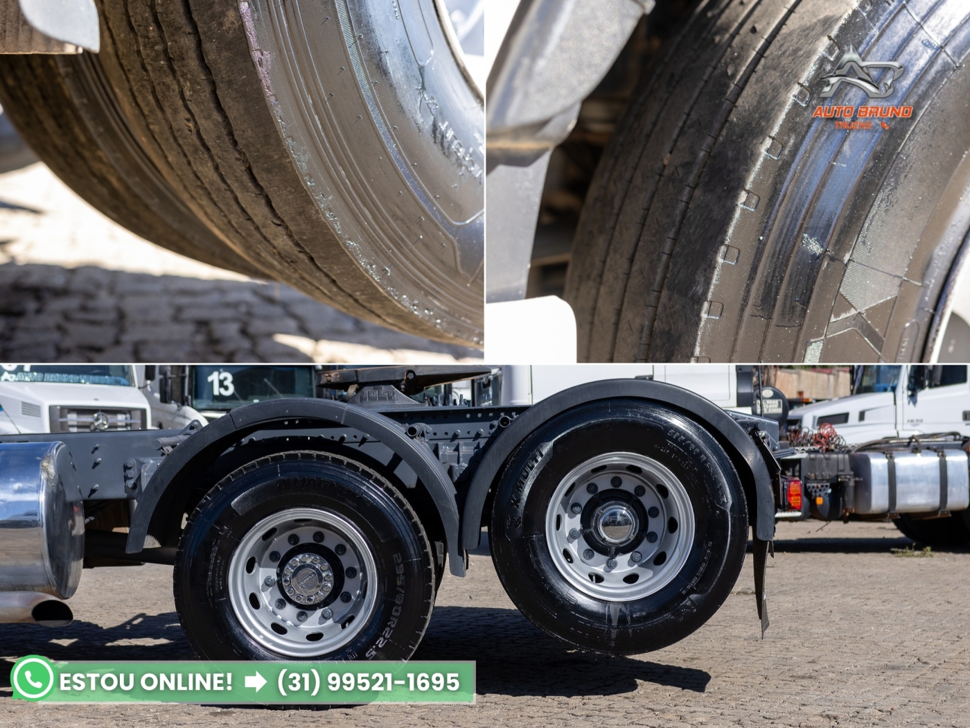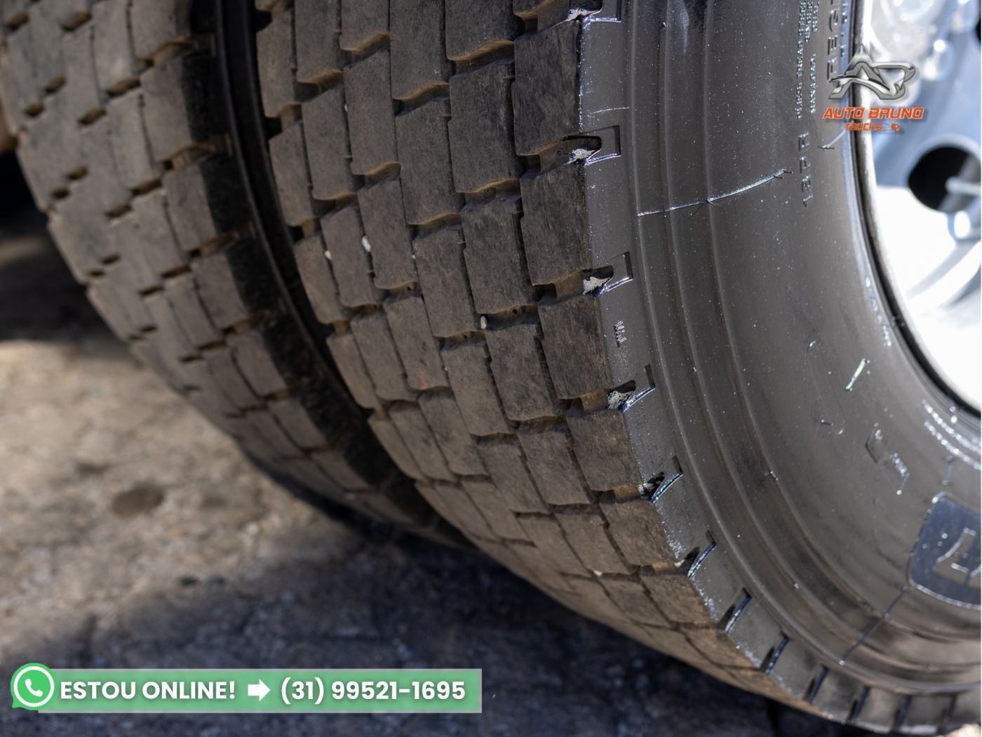 Pneus: Medida 295/80 e conforme as fotos os pneus da tração são borrachudos com 80% de borracha, truck são lisos com 70%, os dianteiros novos com 80% de borracha.
