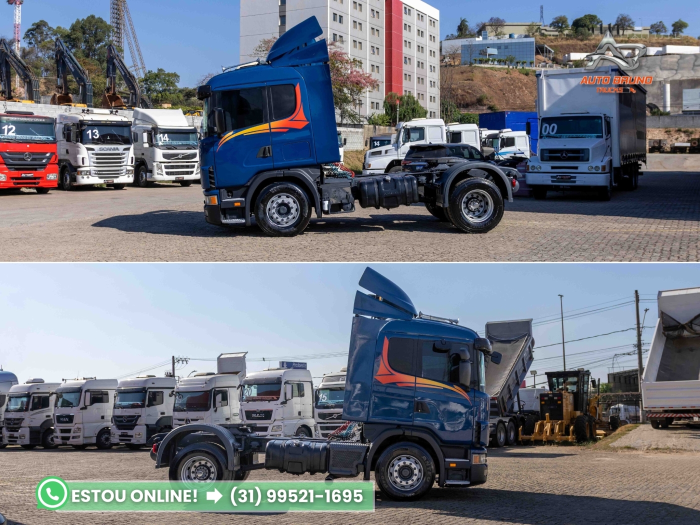 Mecânica: Equipado com motor Scania R380 com kit de potência do Scania 420 instalado, incluindo troca de casquilhos há 200.000 km. Eixo standard. Possui histórico de revisões periódicas. Turbina nova. Pronto para trabalhar.