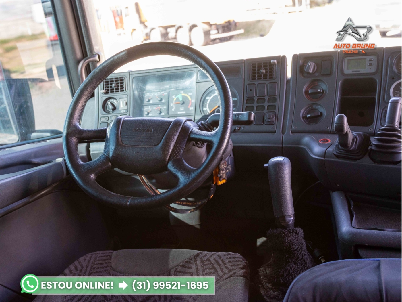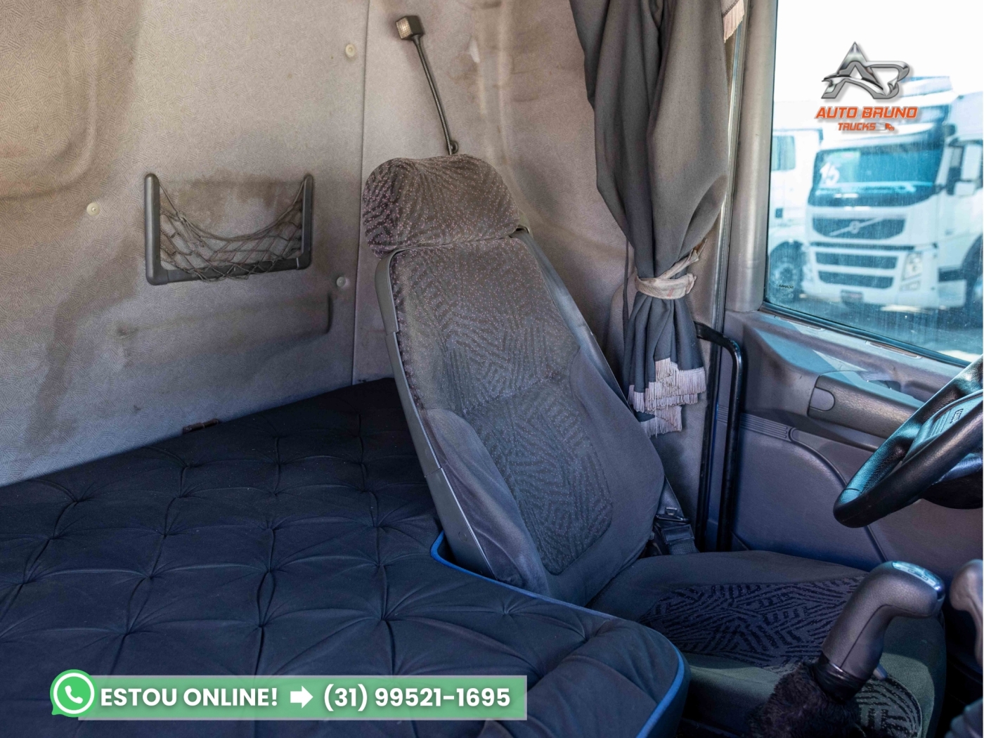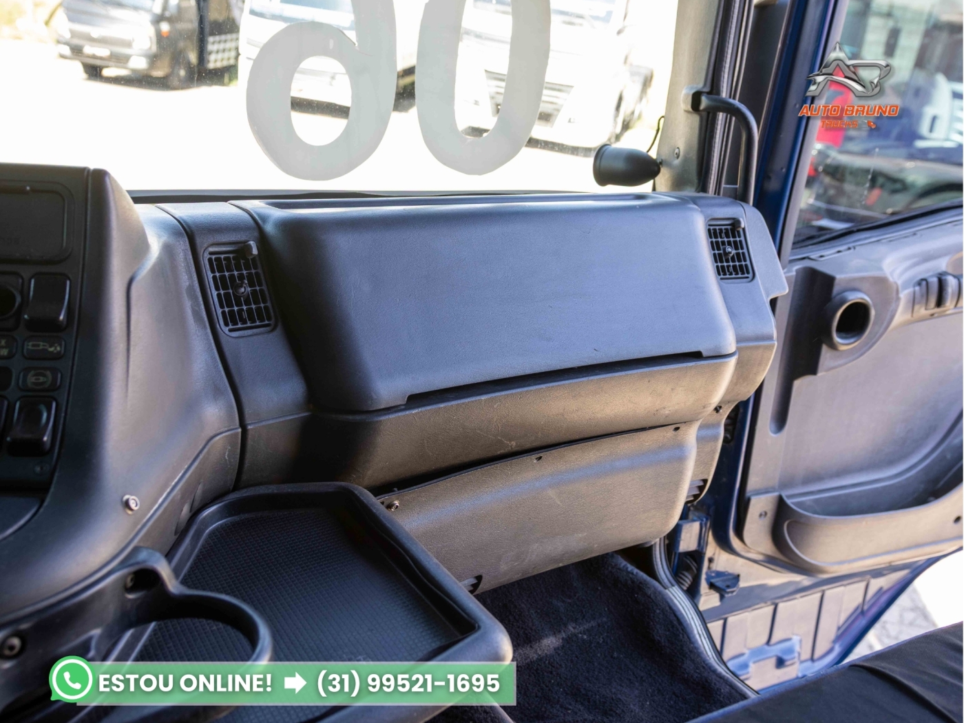 Cabine: Externamente muito bem conservada, passou por polimento recente. Interior em ótimo estado de conservação, ideal para o cliente exigente. Possui defletor de cabine, item que melhora a aerodinâmica e reduz o consumo de combustível em conjunto com baú ou sider.