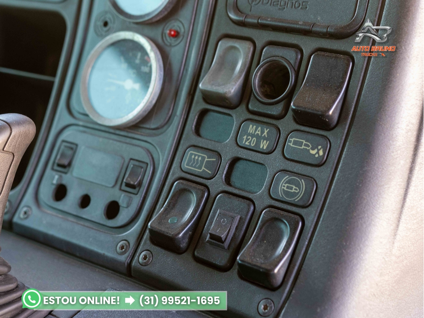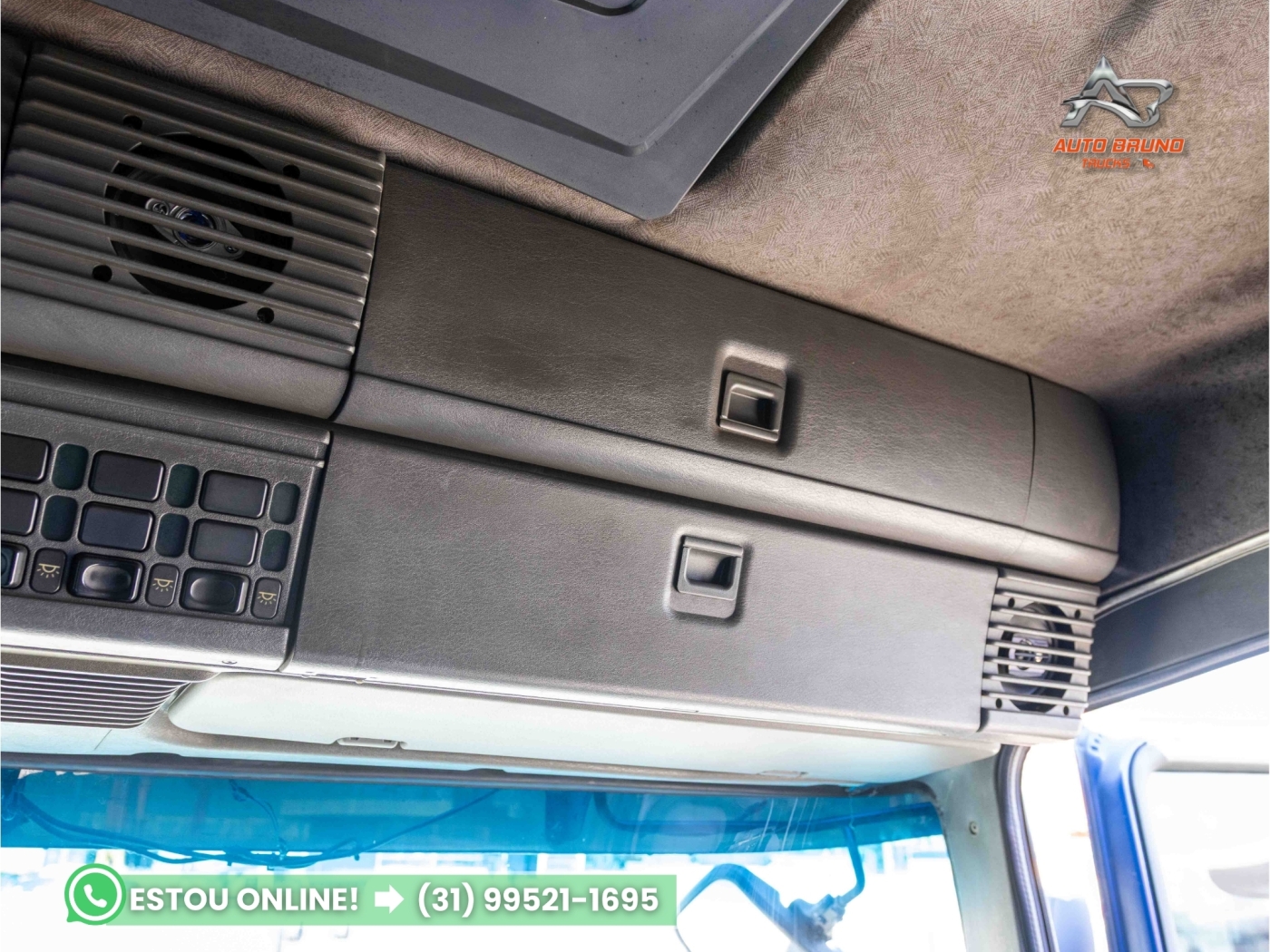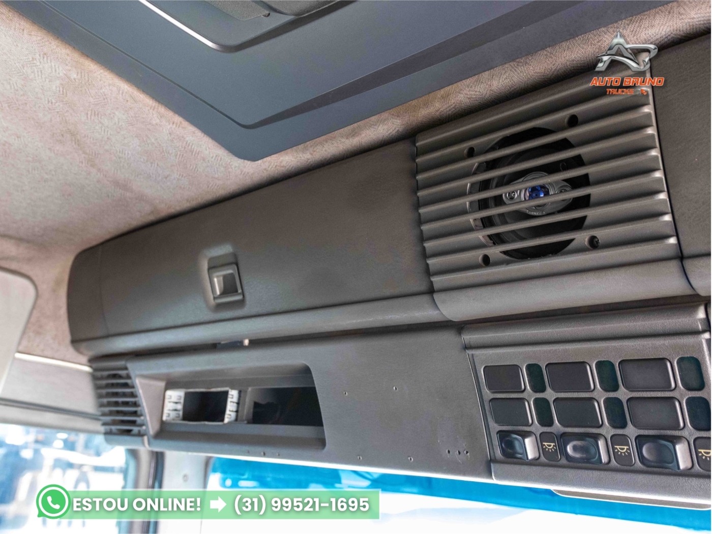 Cabine: Externamente muito bem conservada, passou por polimento recente. Interior em ótimo estado de conservação, ideal para o cliente exigente. Possui defletor de cabine, item que melhora a aerodinâmica e reduz o consumo de combustível em conjunto com baú ou sider.