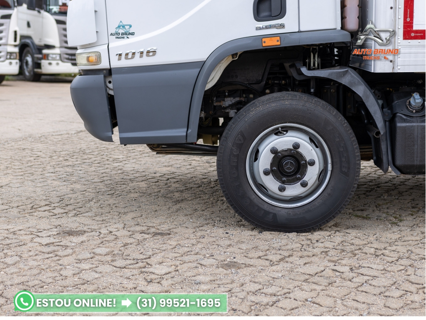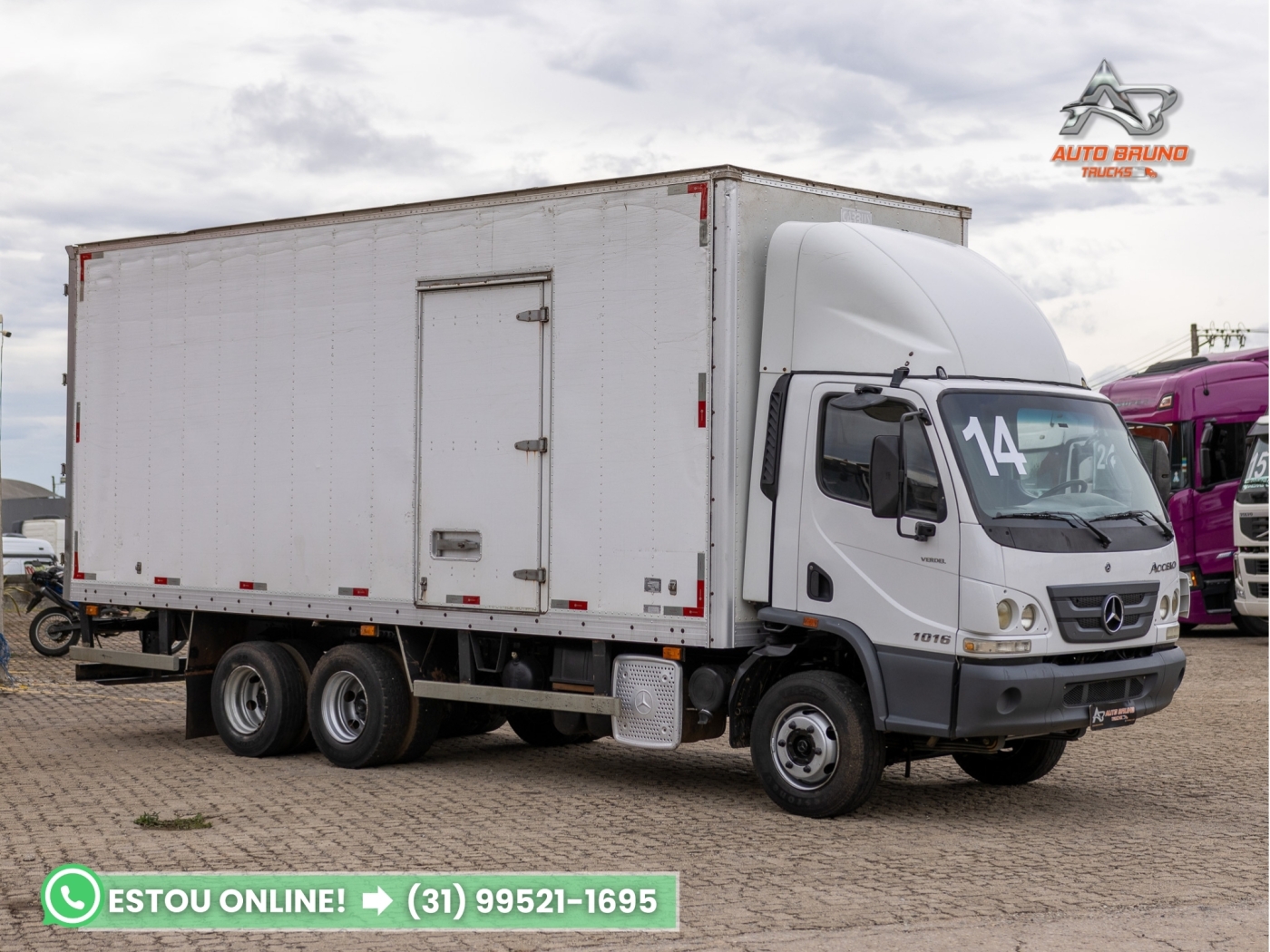 Caminhão Mercedes-Benz Accelo 1016, versão 3/4 trucado 6x2 com apenas 187.000 km rodados, em excelente estado de conservação. Equipado com baú de fibra chapeado com portas traseiras e laterais, ideal para serviços urbanos e regionais com maior capacidade de carga. Caminhão extremamente íntegro, cabine cravada, pneus em ótimo estado e pronto para operação.