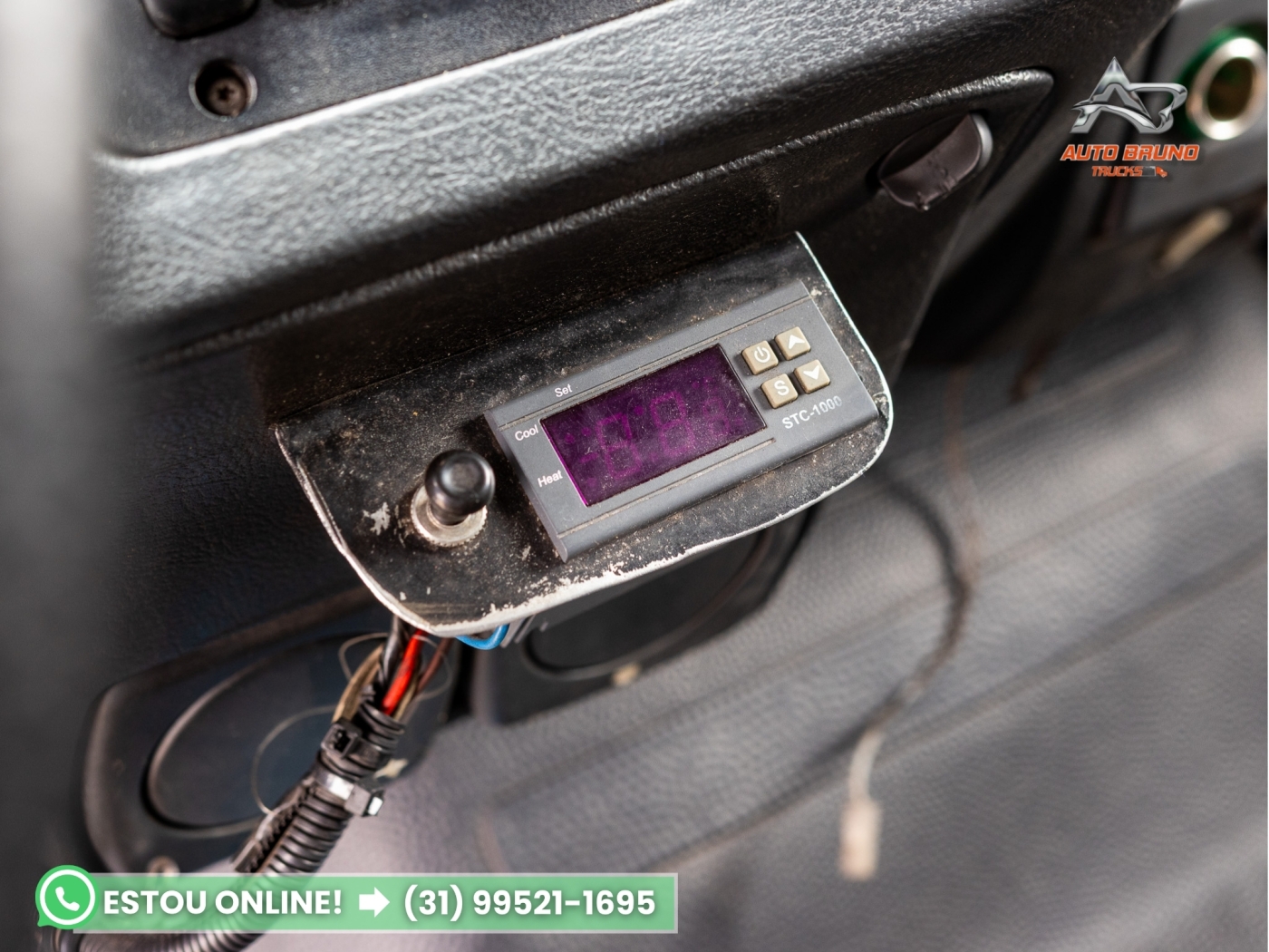 Implemento: Baú refrigerado com motor de refrigeração para carga refrigerada (não freezer), sem apresentar baixas temperaturas. Piso chapeado e estrutura bem mantida. Dimensões internas: 7,80m de comprimento, 2,60m de altura e 2,60m de largura.