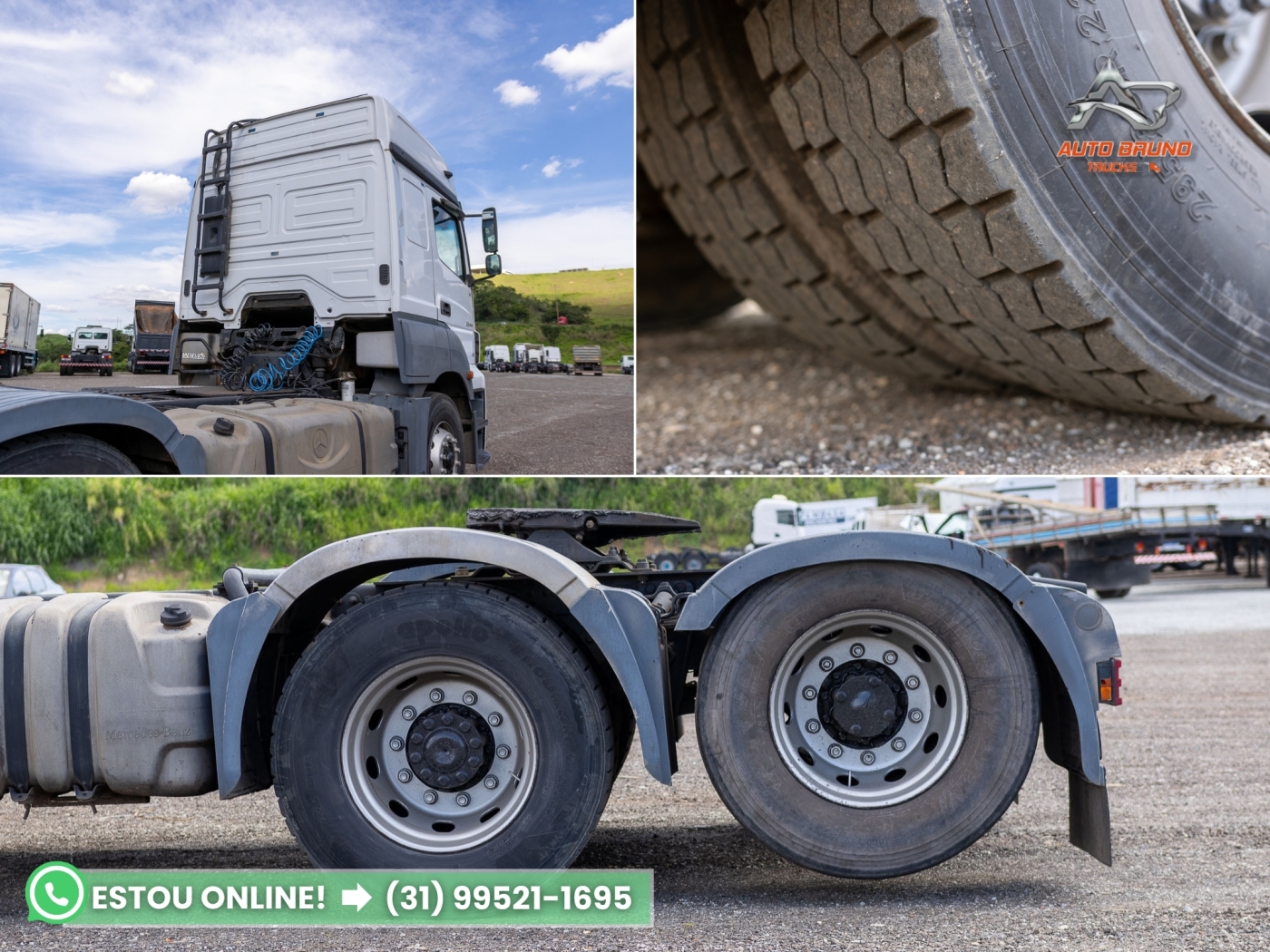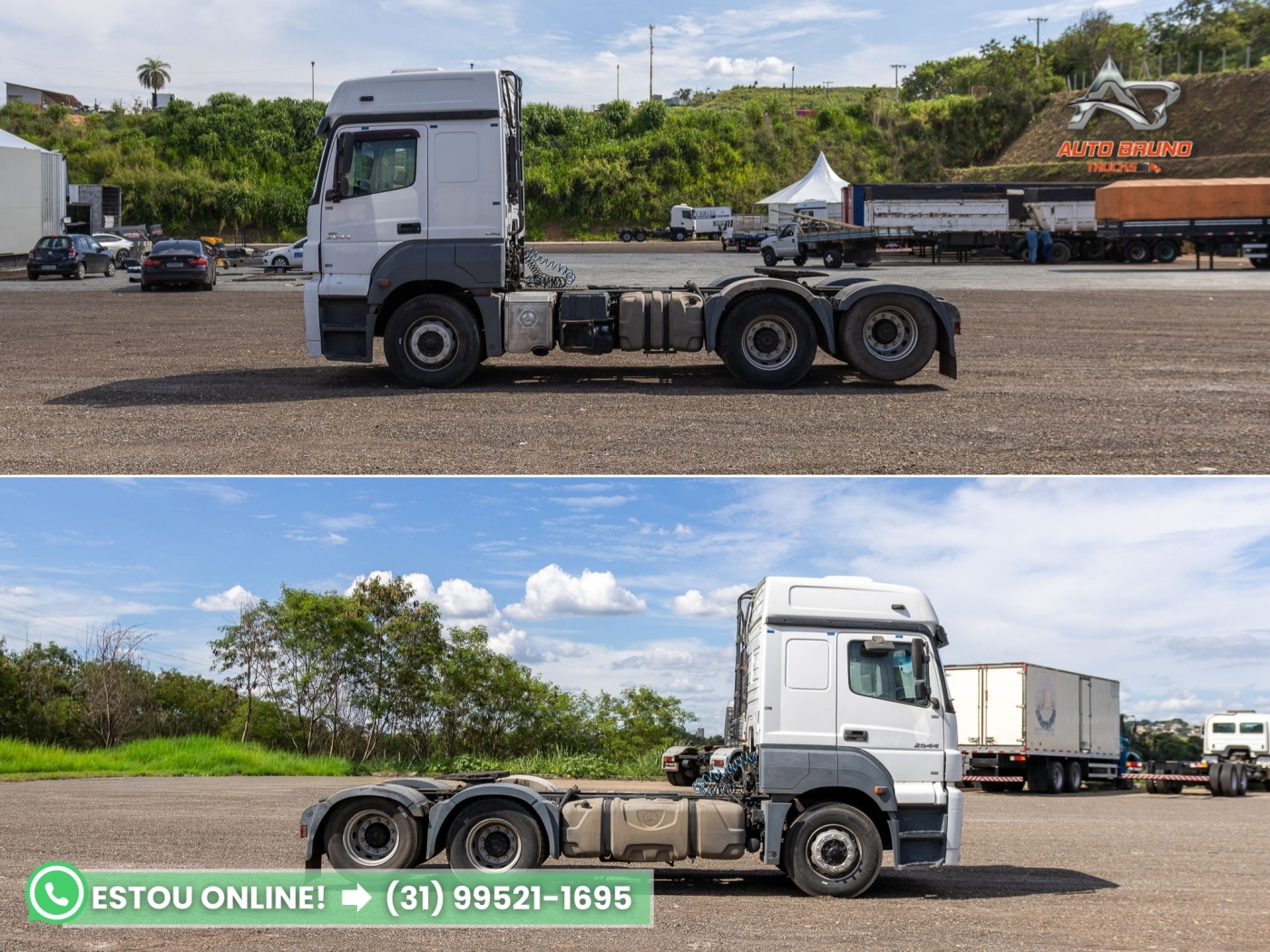 Cavalo mecânico Mercedes-Benz Axor 2544 6x2 teto alto, ano 2014/2014, com diferencial bug leve e motor original com 877.227 km. Se destaca entre os Axor da mesma versão por estar com revisões em dia, boa conservação estrutural e histórico rodoviário leve. Ideal para quem busca um cavalo confiável e pronto para trabalhar com custo-benefício excelente frente à concorrência.