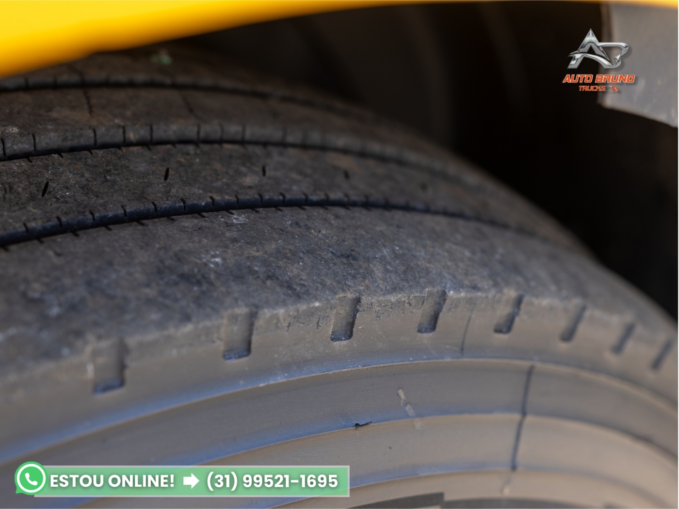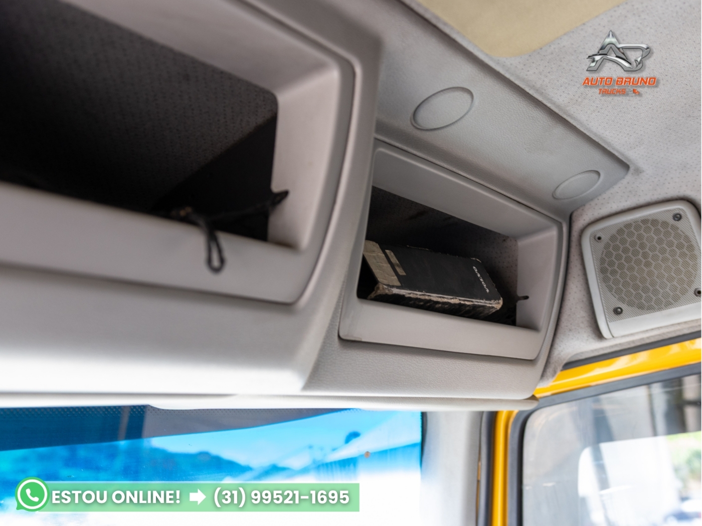 Cabine: Interna em excelente estado com leito, interclima de teto funcionando e bancos bem conservados. Cabine externa na cor amarela com visual muito chamativo. Polimento completo realizado recentemente, com pouquíssimos detalhes de uso.