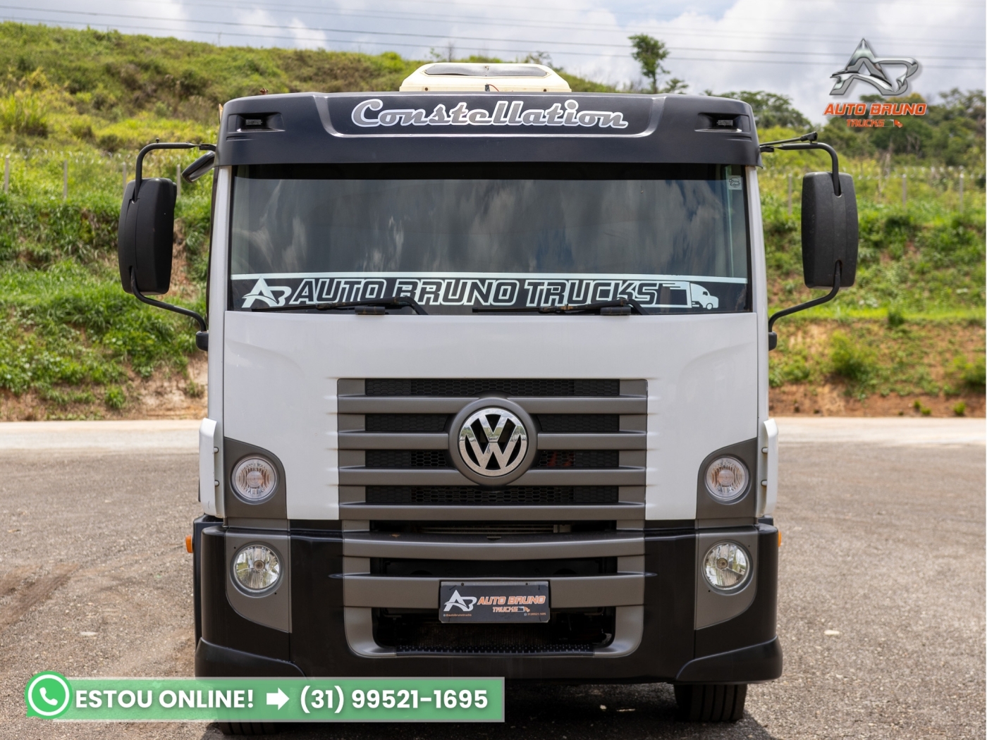 Cabine Constellation teto baixo com boa conservação geral. Interior com bancos em ótimo estado, volante e painel sem marcas significativas. Possui interclima de teto funcional.