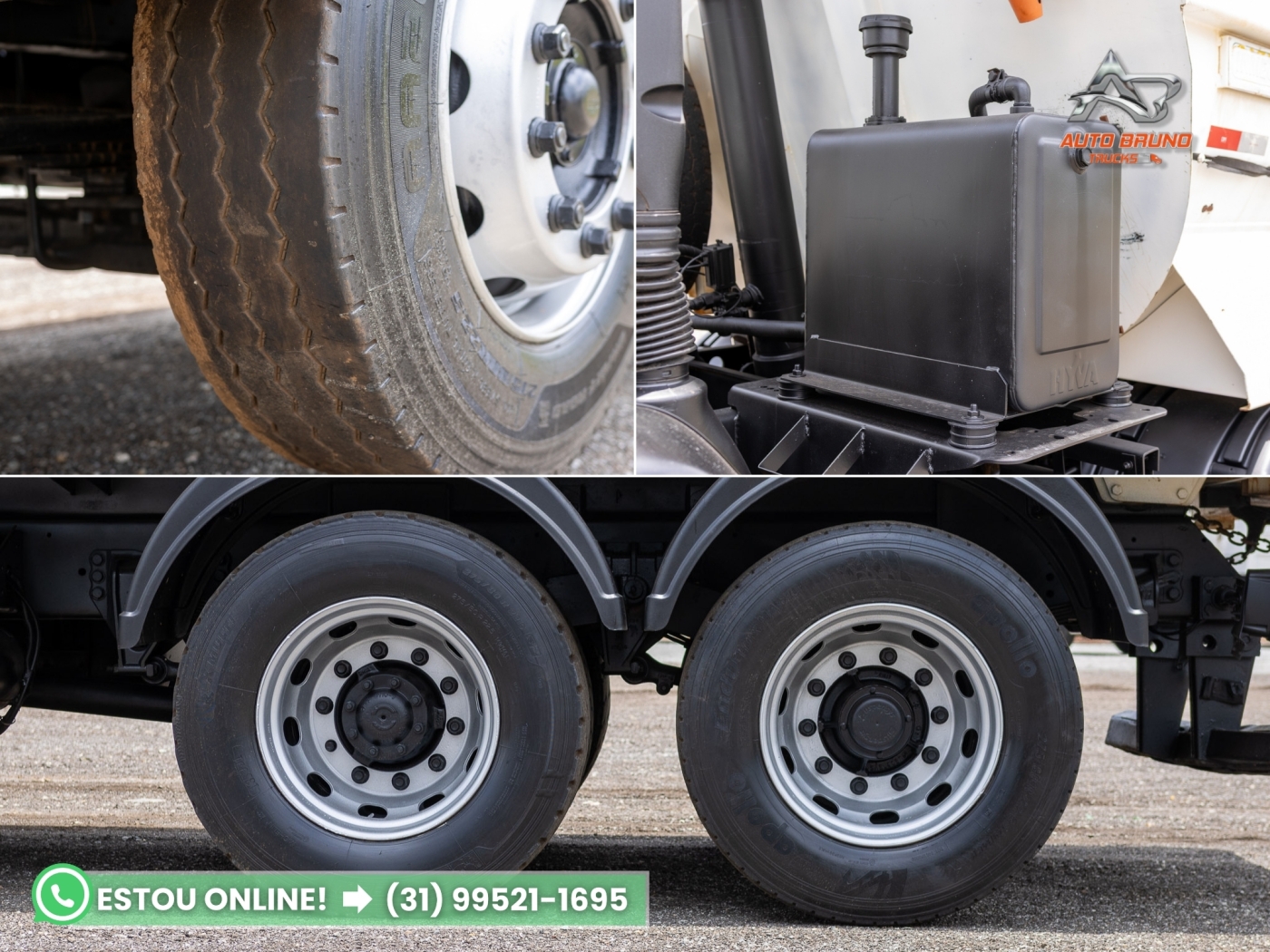 Rodado 275/80. Dianteiros em 90% de borracha, bitruck com 70% e tração também em 70%, conforme fotos.
