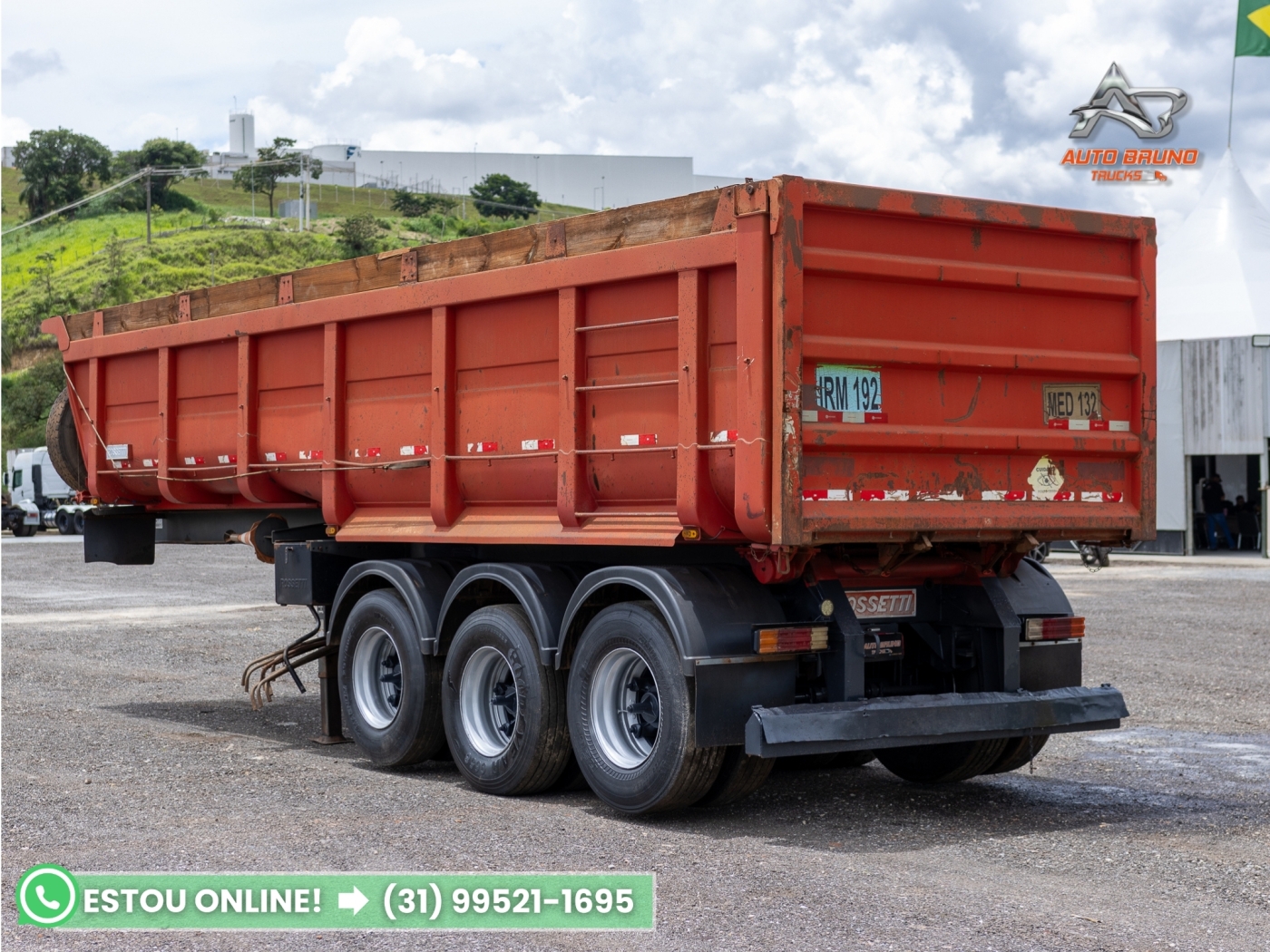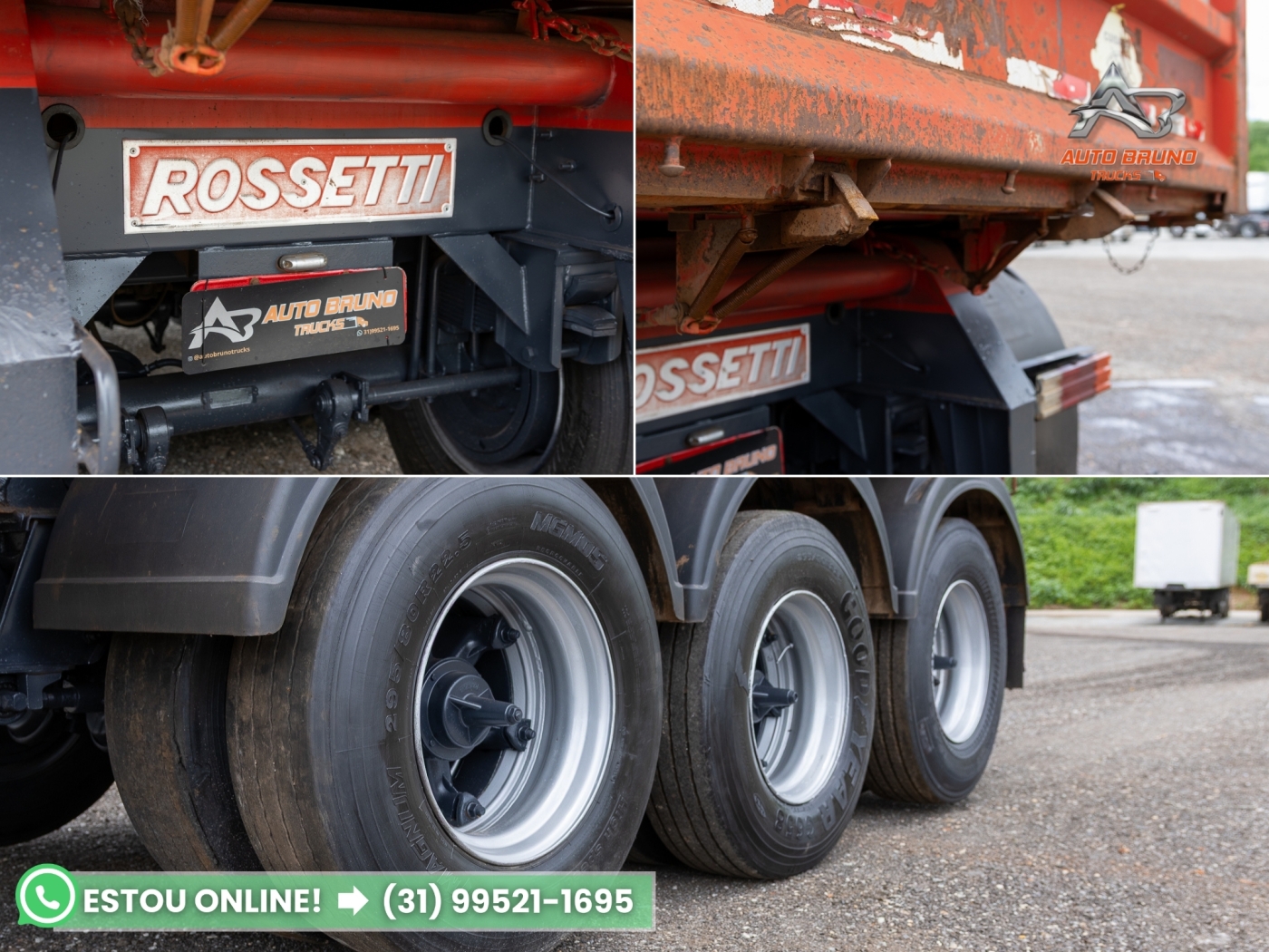 Carreta basculante caçamba Rosseti 3 eixos e chassi em bom estado, possui capacidade de 25m³, poucas marcas de uso com caixote muito bom. Está equipada com pneus que acompanham a mesma, caixa de ferramentas dos dois lados e cantil.