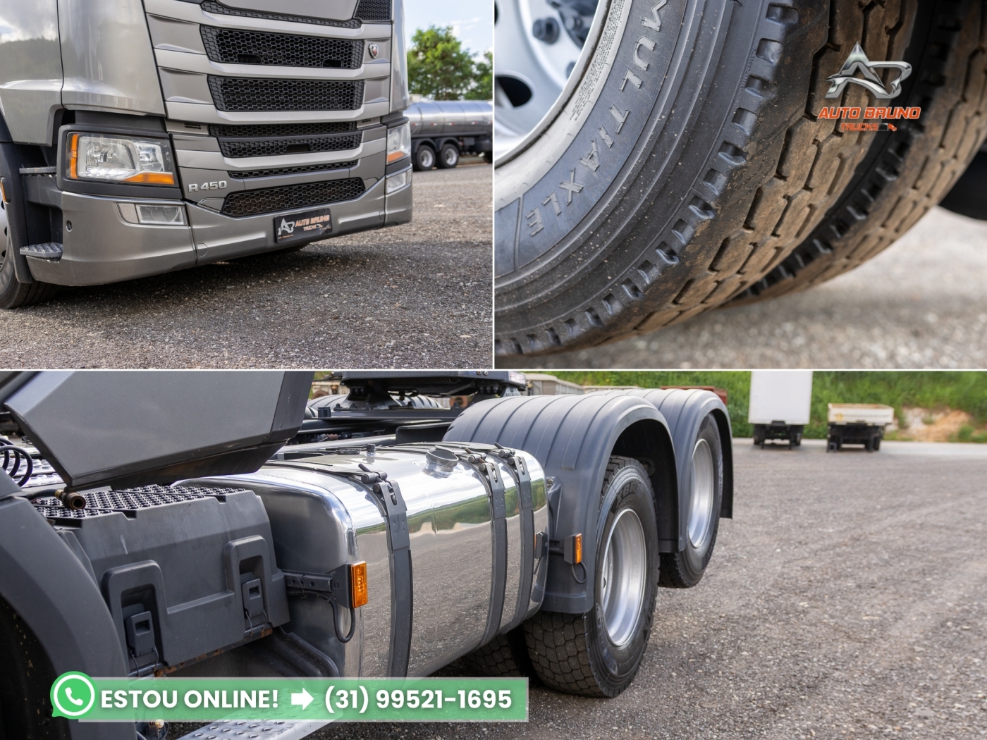 Vantagens: Cavalo mecânico com excelente padrão de conservação, cabine muito acima da média para o ano e com interior praticamente em estado de zero. Conjunto de pneus com tração e truck sem uso, diferencial canelinha que entrega ótima relação entre força e velocidade e cabine muito completa com interclima de teto e diversos itens de conforto. Destaque também para a configuração de tanques polidos e conjunto aerodinâmico completo com defletores laterais e de teto.