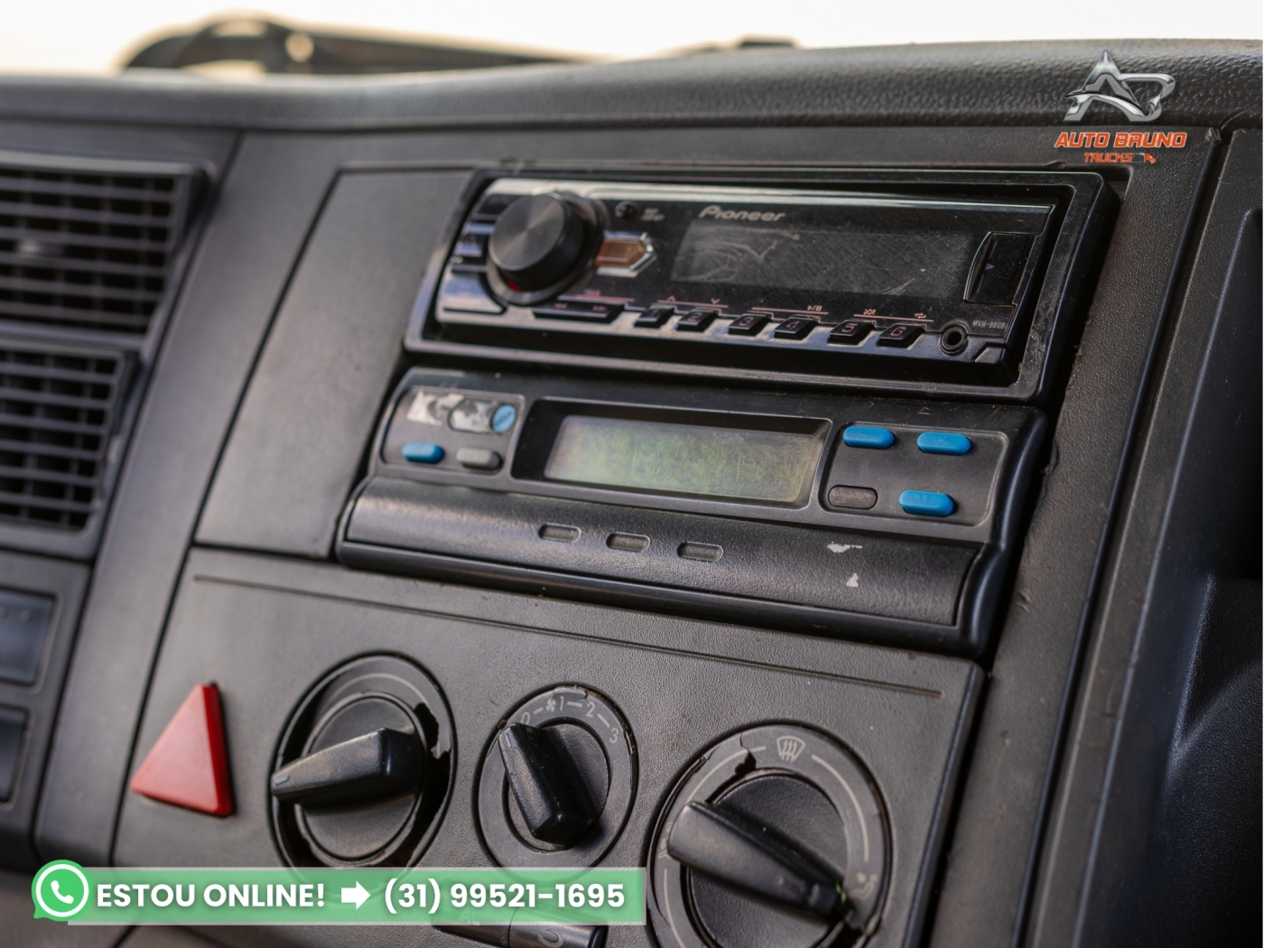 Cabine: Cabine teto baixo em ótimo estado de conservação, com pintura bem preservada e poucas marcas de uso para o ano. Interior muito conservado, bancos e painel bem cuidados, caminhão chamativo e bem apresentado.
