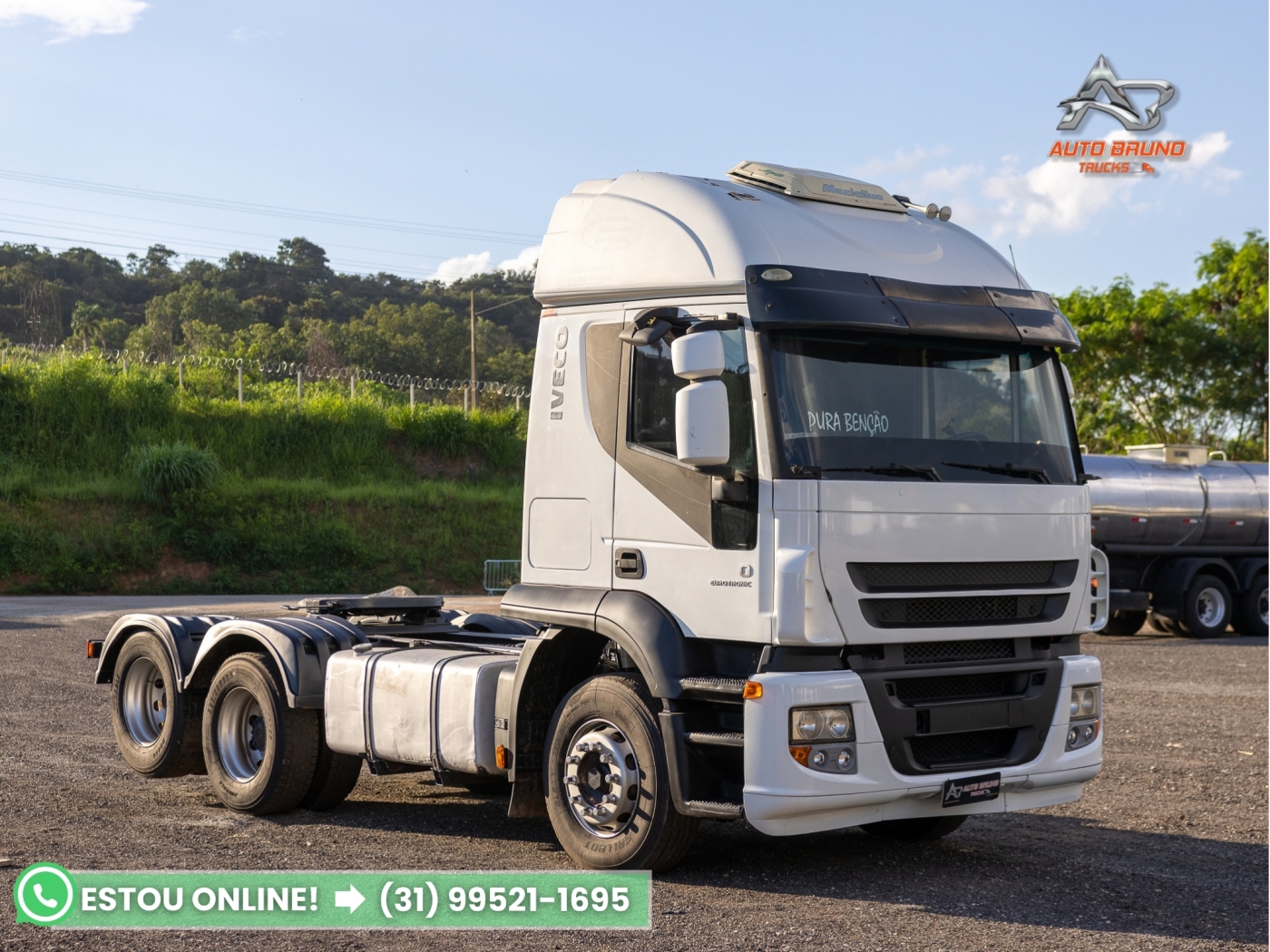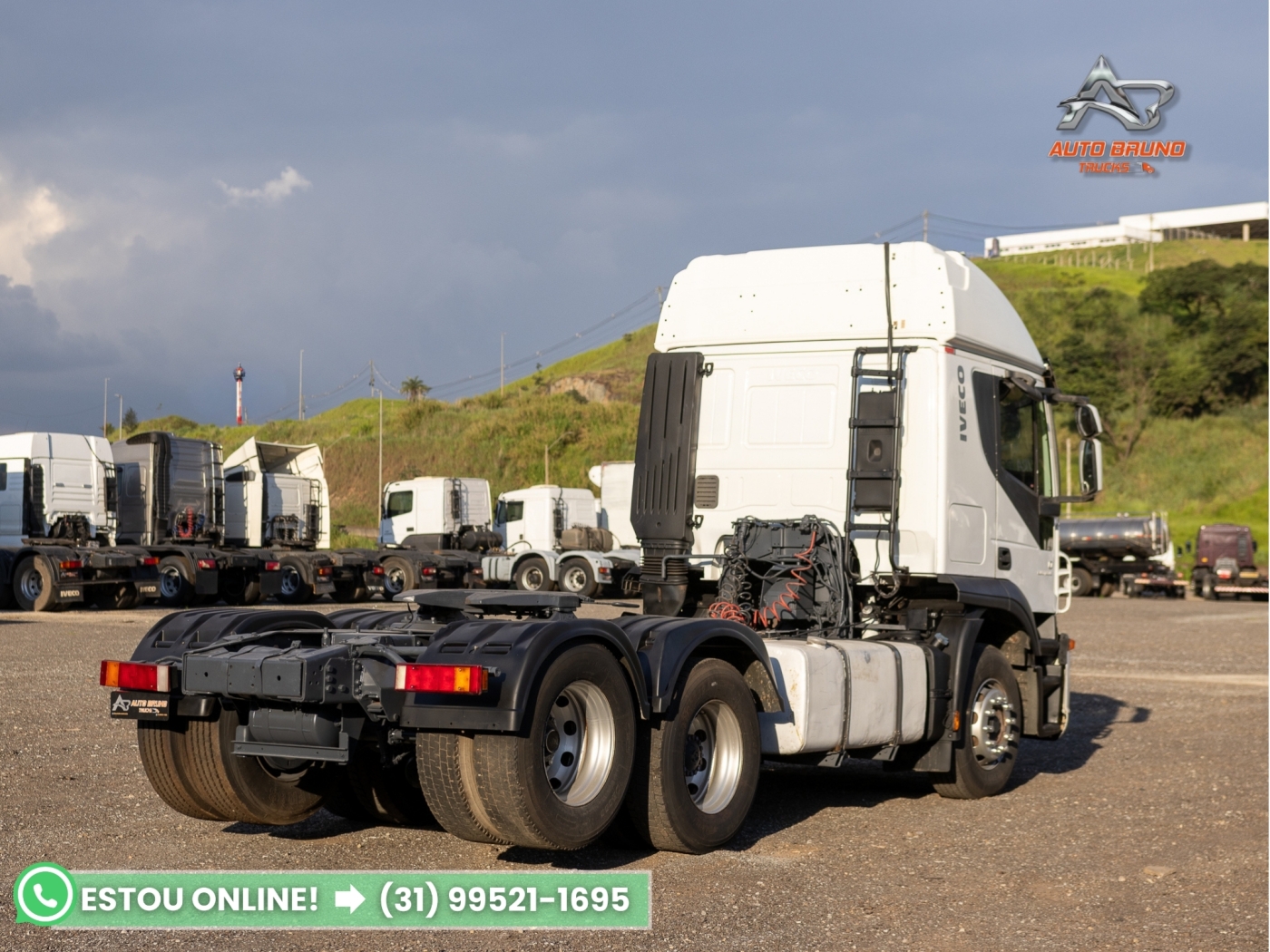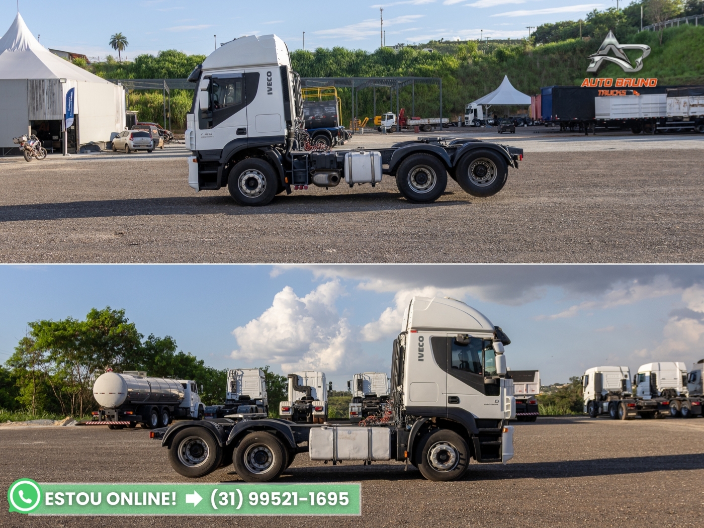Vantagens: Cavalo mecânico Iveco 440 6x2 trucado teto alto, configuração muito procurada para aplicação rodoviária. Equipado com câmbio automático Eurotronic, proporcionando maior conforto na condução e melhor eficiência operacional. Cabine com leito muito espaçoso e armários internos, diferencial importante para quem roda longas distâncias. Possui ainda interclima de teto, aumentando o conforto durante as paradas. Diferencial canelinha, favorecendo melhor desempenho rodoviário em comparação a configurações mais pesadas.
