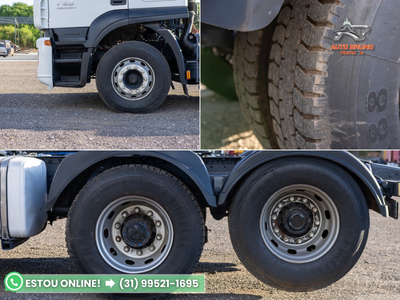 Pneus: Medida 295/80. Pneus dianteiros com aproximadamente 70% de borracha, pneus da tração com cerca de 70% de borracha e pneus do truck com menos de meia vida, conforme apresentado nas fotos.