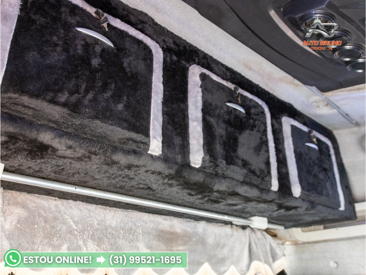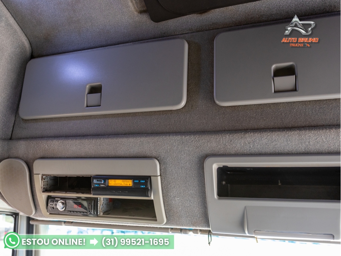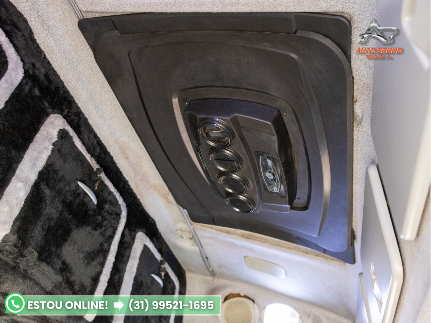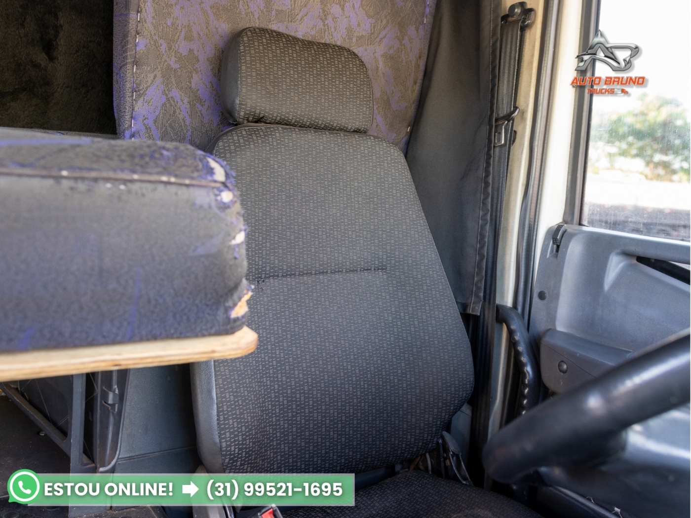 Cabine: Cabine teto alto com bom espaço interno e excelente conforto para viagens. Interior em bom estado de conservação, com leito amplo e armários internos, oferecendo maior praticidade para o motorista em viagens longas.