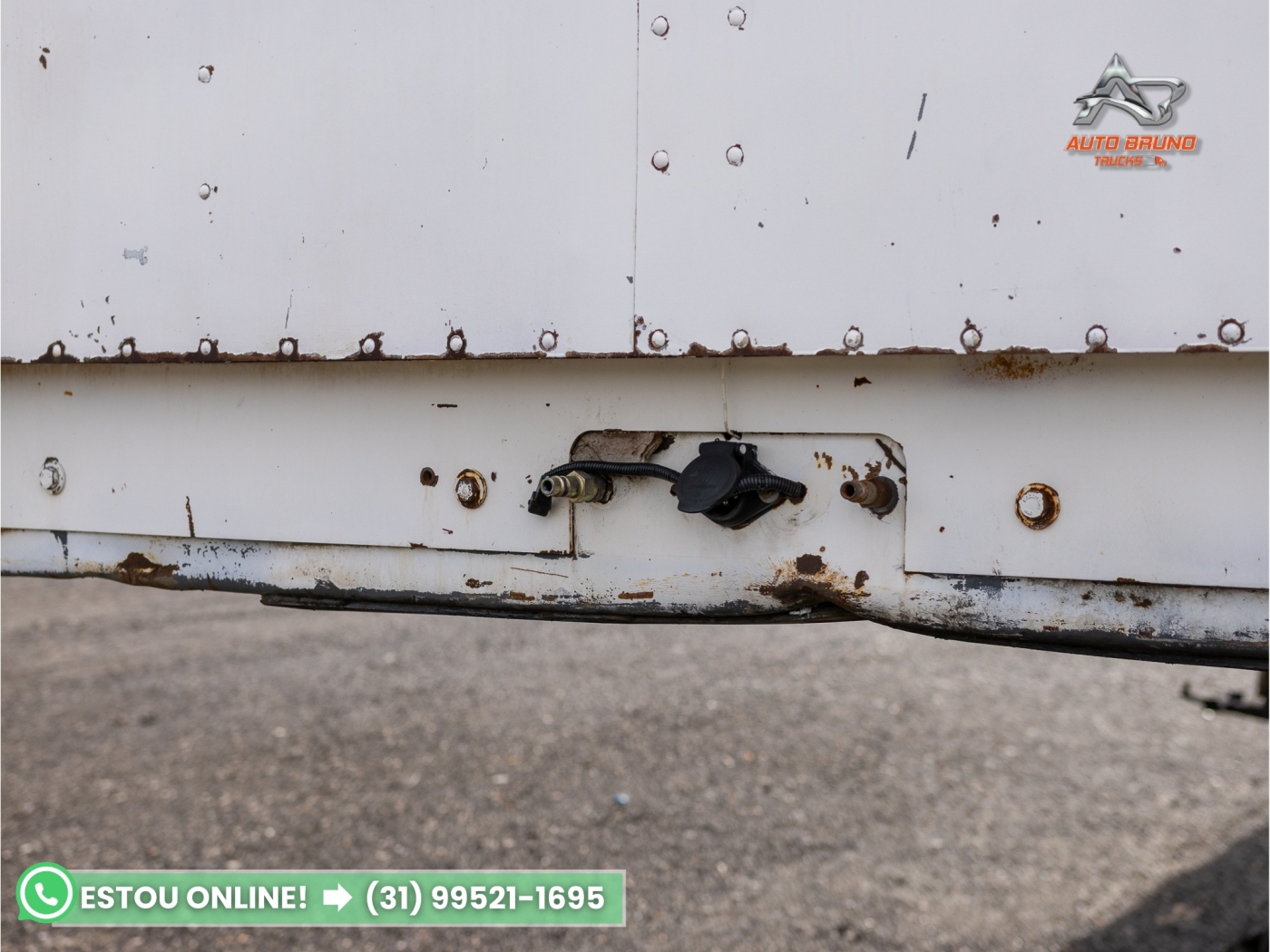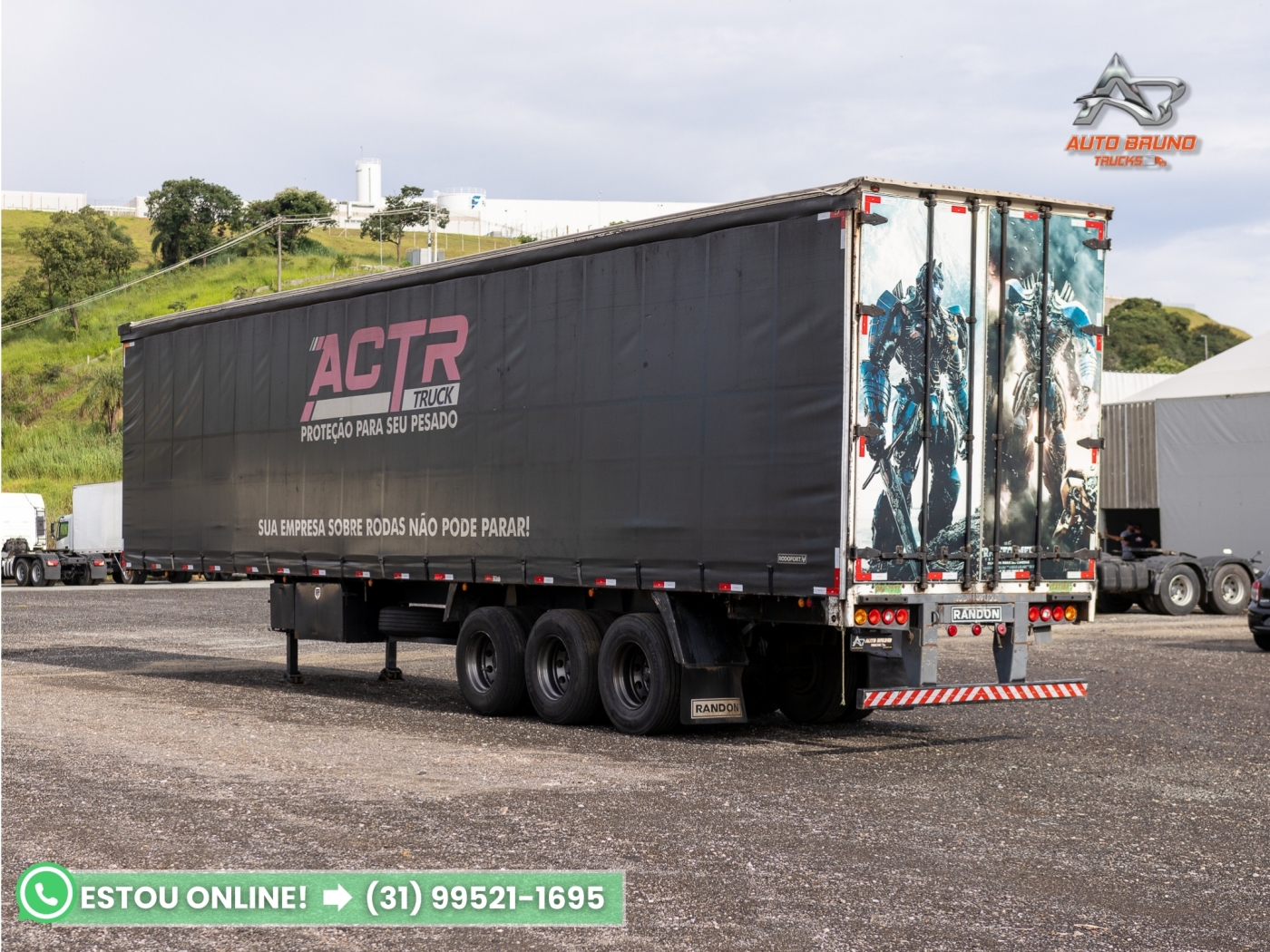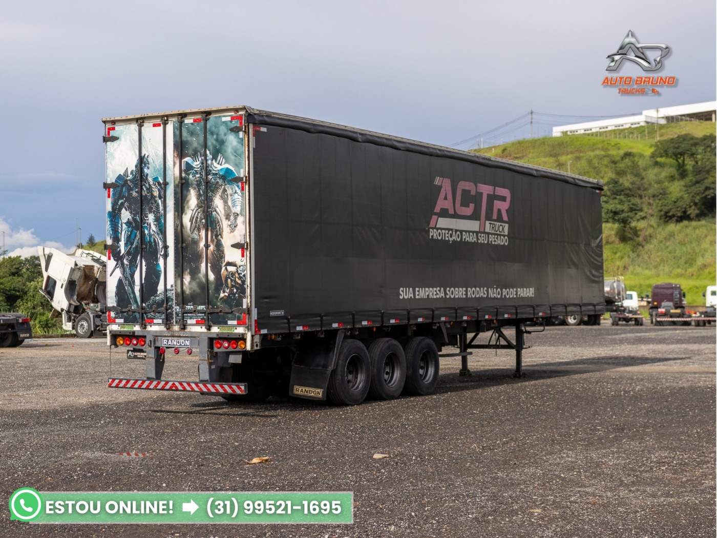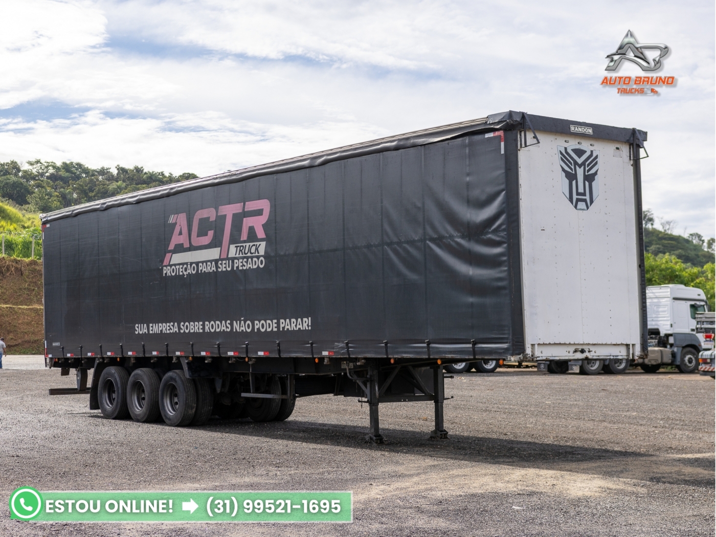 Implemento: Baú sider marca Randon com capacidade para 28 paletes. Medidas internas aproximadas de 14,60m de comprimento, 2,60m de largura e 2,97m de altura. Possui assoalho em chapa, colunas forradas com 3 réguas laterais, 3 linhas de vida e lonas em excelente estado de conservação. Conta também com caixa de ferramentas instalada.