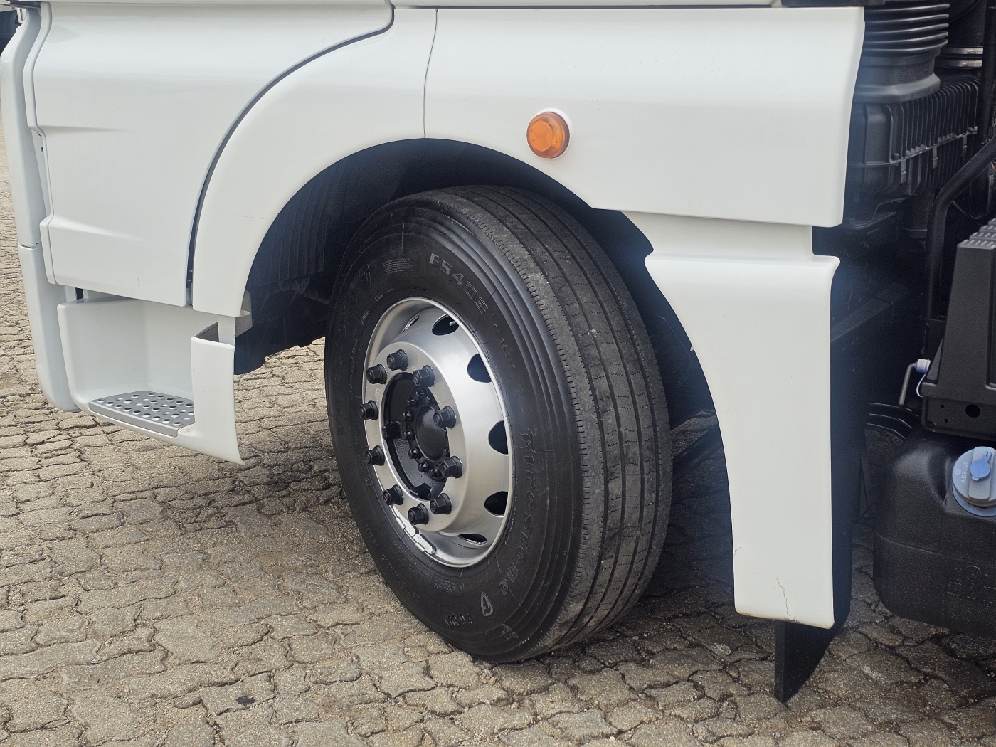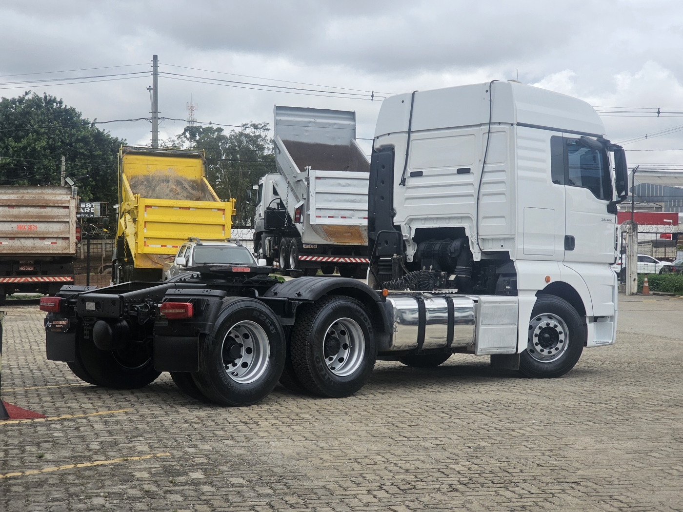 Pneus: Medida 295/80 e conforme as fotos os pneus da tração com cerca de 80% da vida util, os dianteiros com 70% da borracha