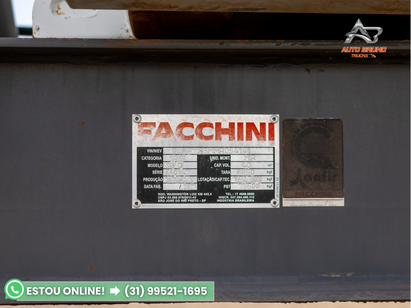 *Lotação/Cap Técnica: 16.650kg/33.000kg