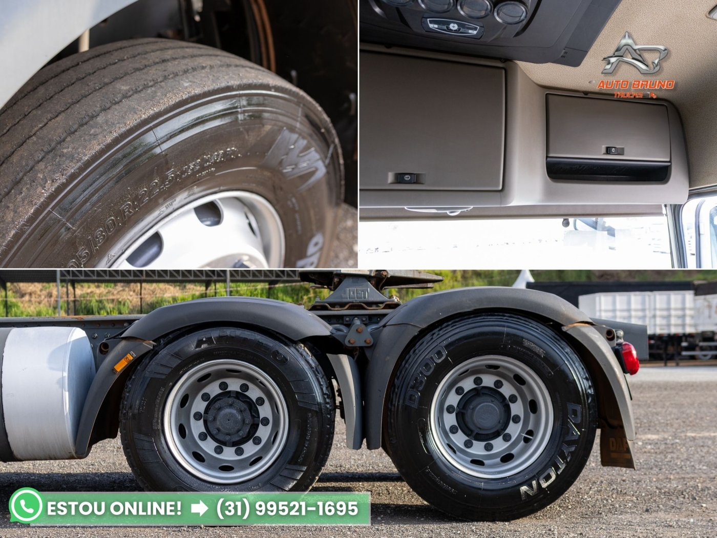 ✅ Pneus em excelente estado – dianteira 75%, tração 80% e trucks 70%