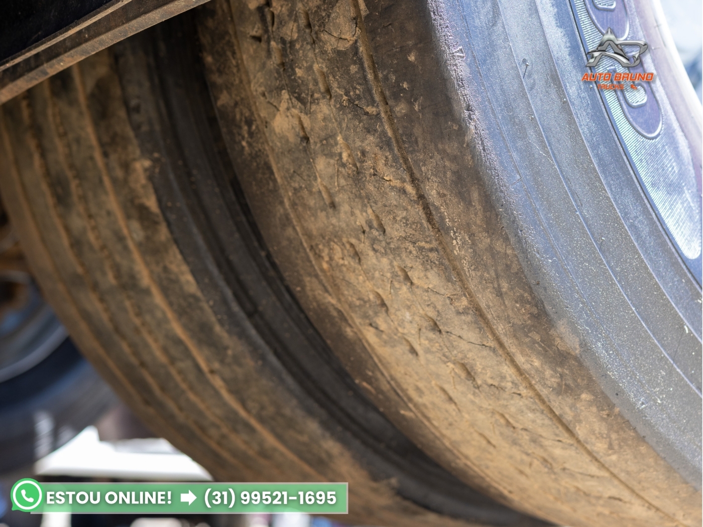 Pneus: Medida 295/80. Dianteiros com 70% de borracha, pneus de tração borrachudos com 70% e truck com 60% lisos, conforme fotos.