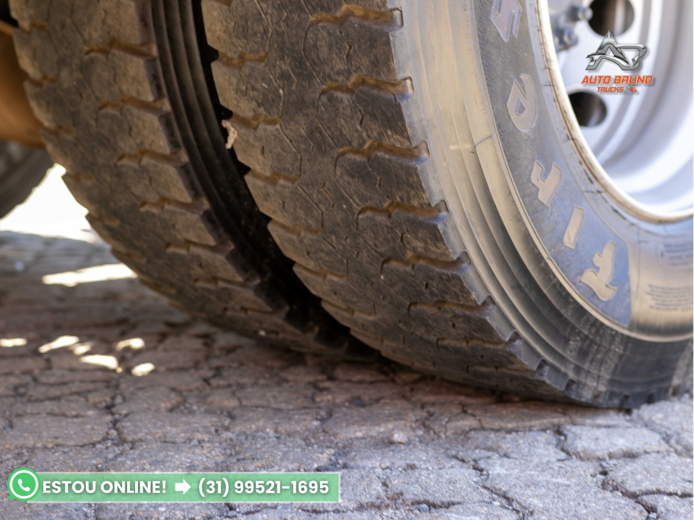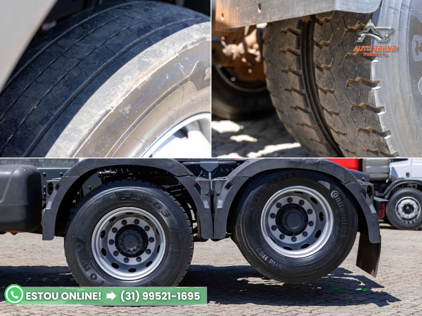 Pneus: Medida 295/80. Pneus dianteiros com 60% de borracha, pneus da tração com perfil borrachudo em 90% e pneus do truck lisos com aproximadamente 70%, conforme fotos.