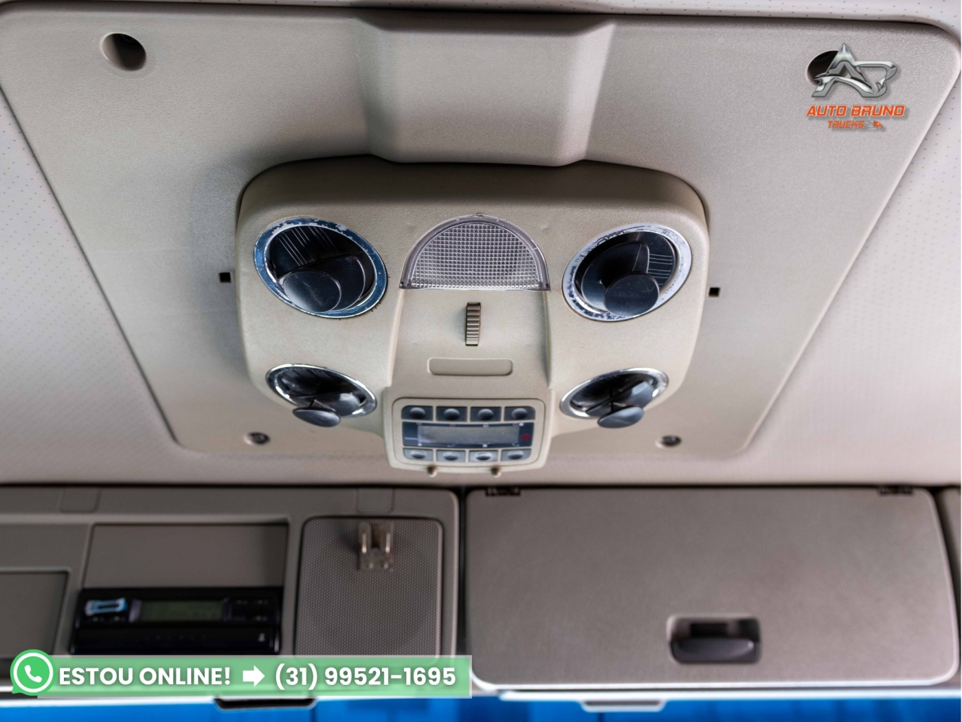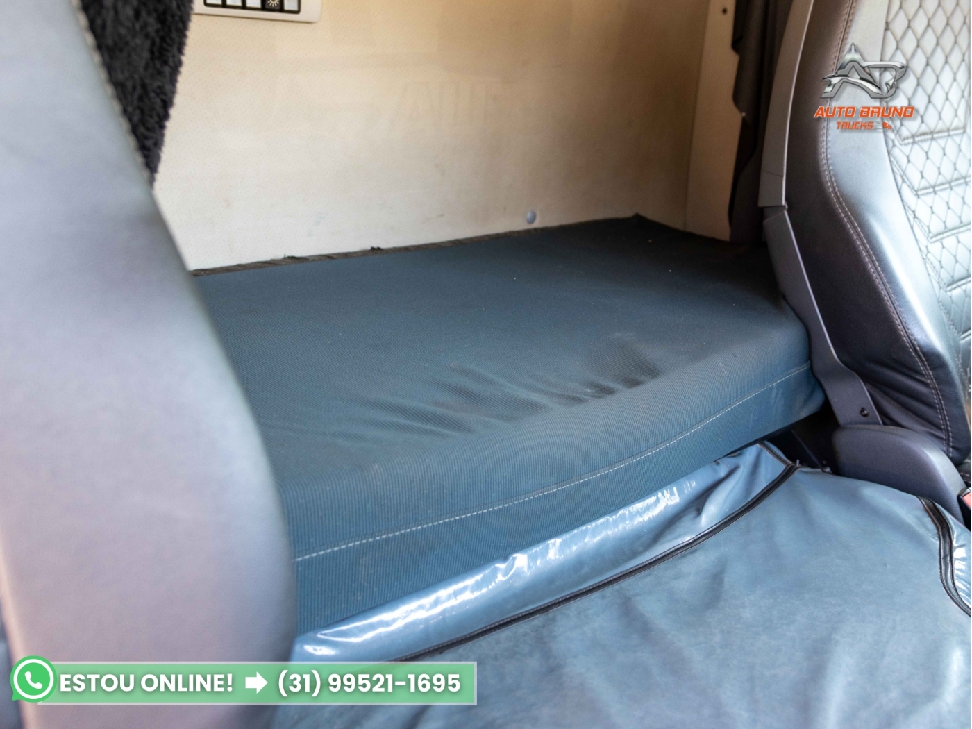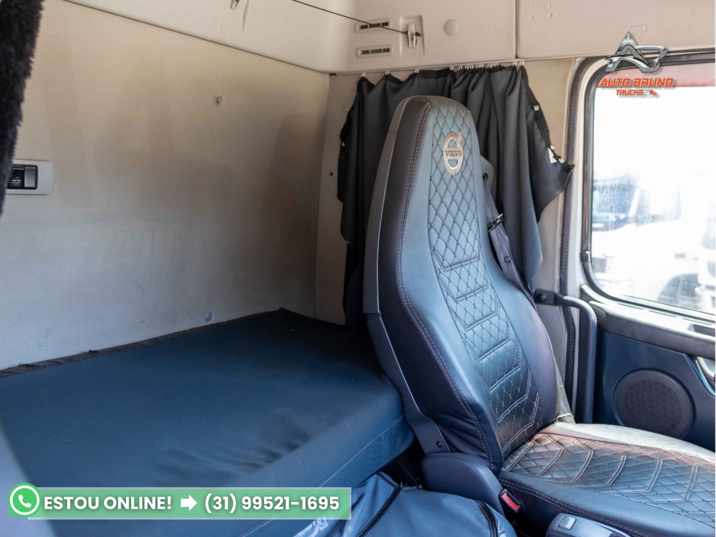 Cabine: Cabine com teto baixo equipada com defletores de cabine. Externa muito bem conservada, polida e sem marcas de impacto. Interior bem preservado com estofamento dos bancos, painel e maleiros em ótimo estado.