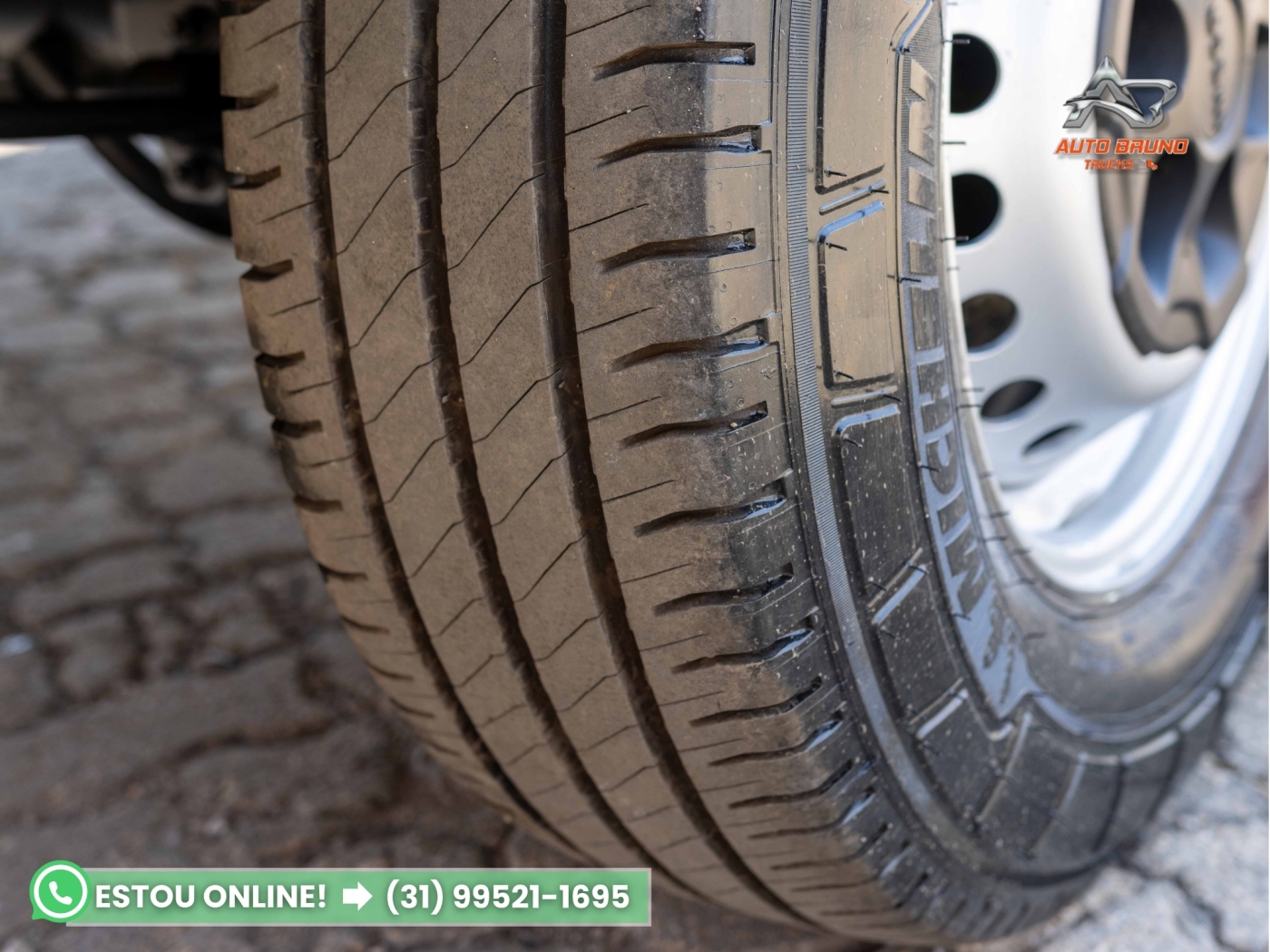 Medida 225/75 R16, com todos os pneus em bom estado de uso, prontos para rodar. Dianteiros com cerca de 65% de borracha e tração com 90%.