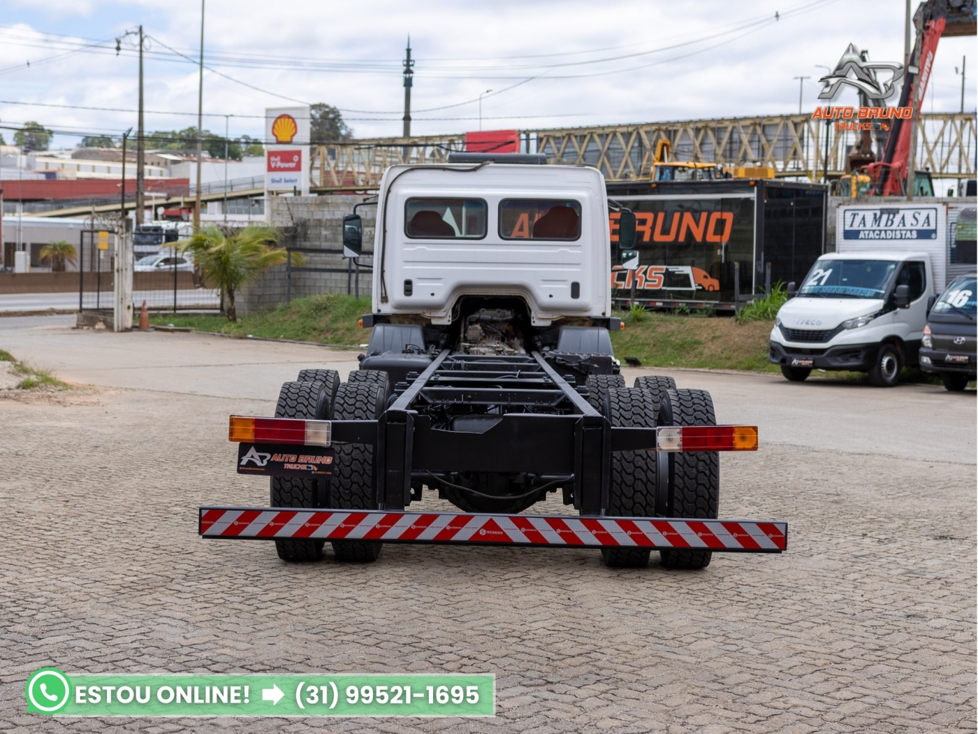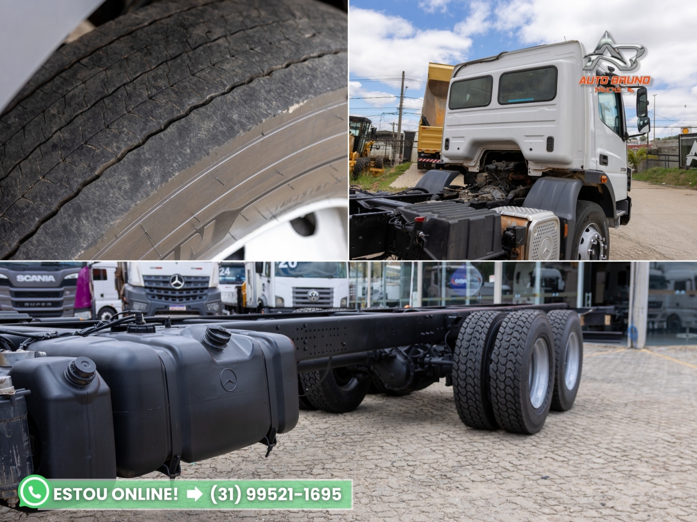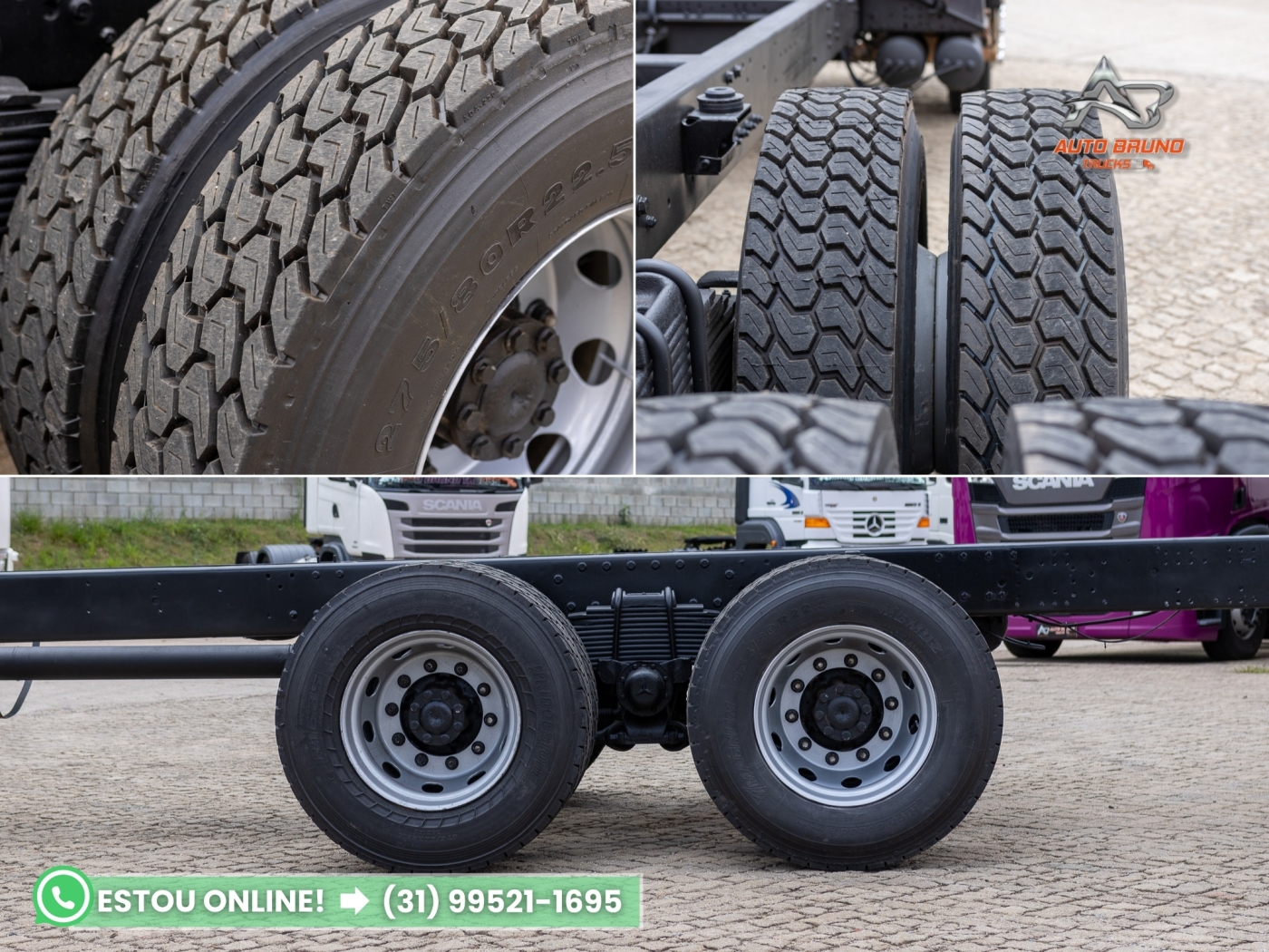 Entre eixos de 5,20m e comprimento total do chassi de 8,70m. Estrutura totalmente alinhada, sem sinais de soldas ou avarias aparentes.