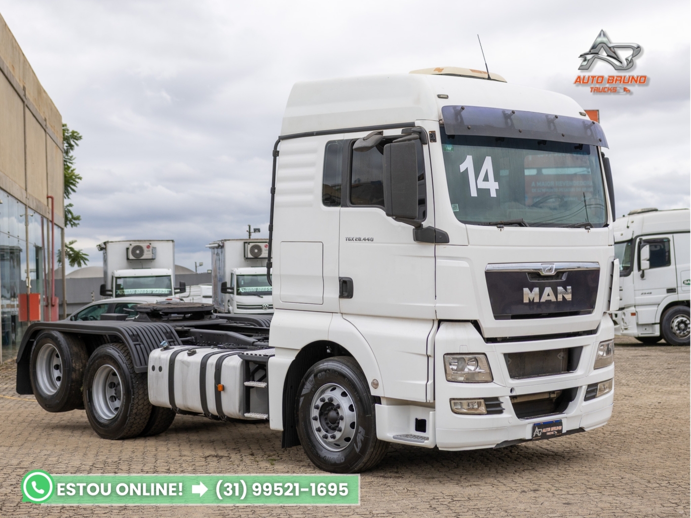 Cavalo MAN TGX 28.440 6x2, ano 2013/2014, com motor original e apenas 780.000 km, revisões periódicas em dia, pneus em ótimo estado e diferencial bug leve (canelinha). Destaca-se entre os MAN da mesma versão pela conservação mecânica, consumo eficiente e custo-benefício superior para operação rodoviária.