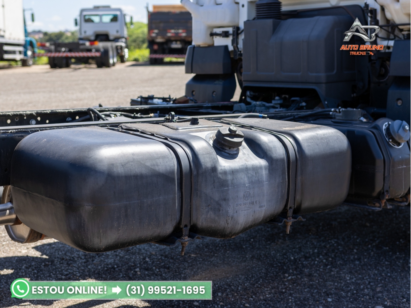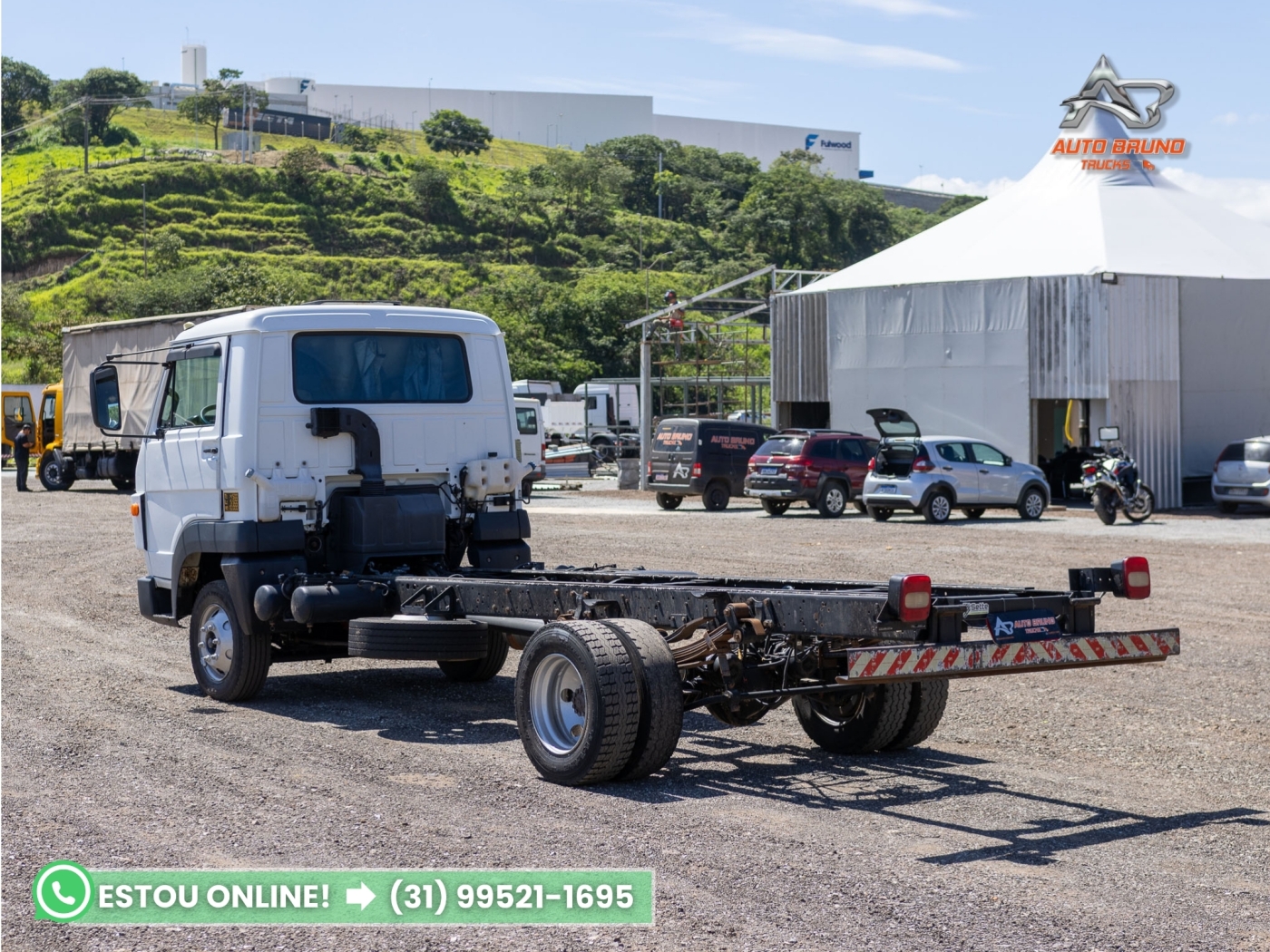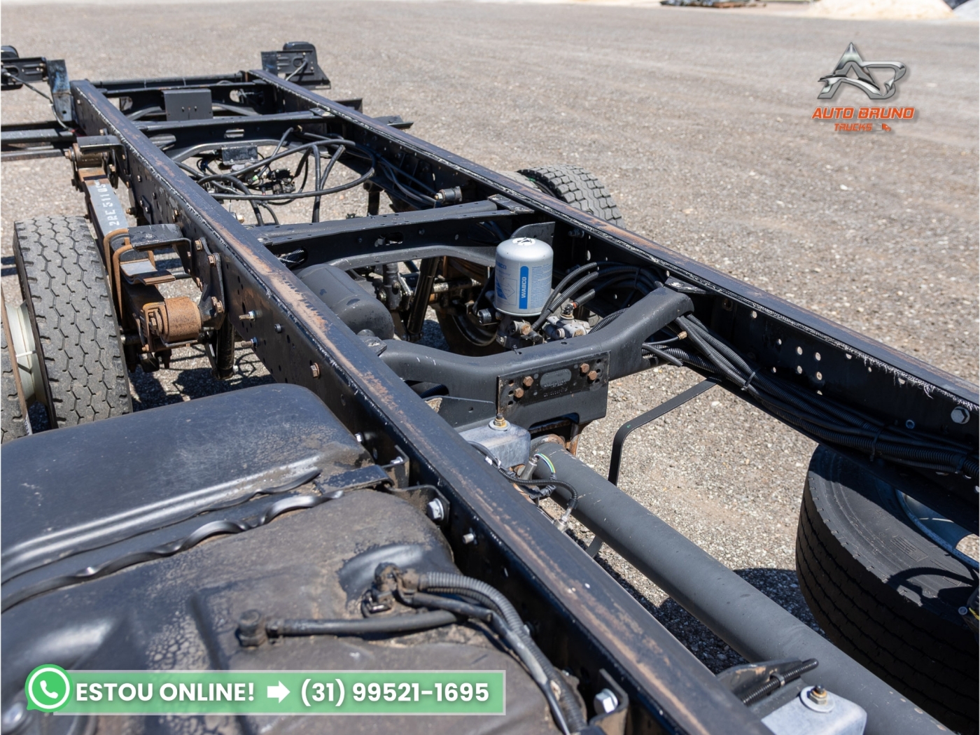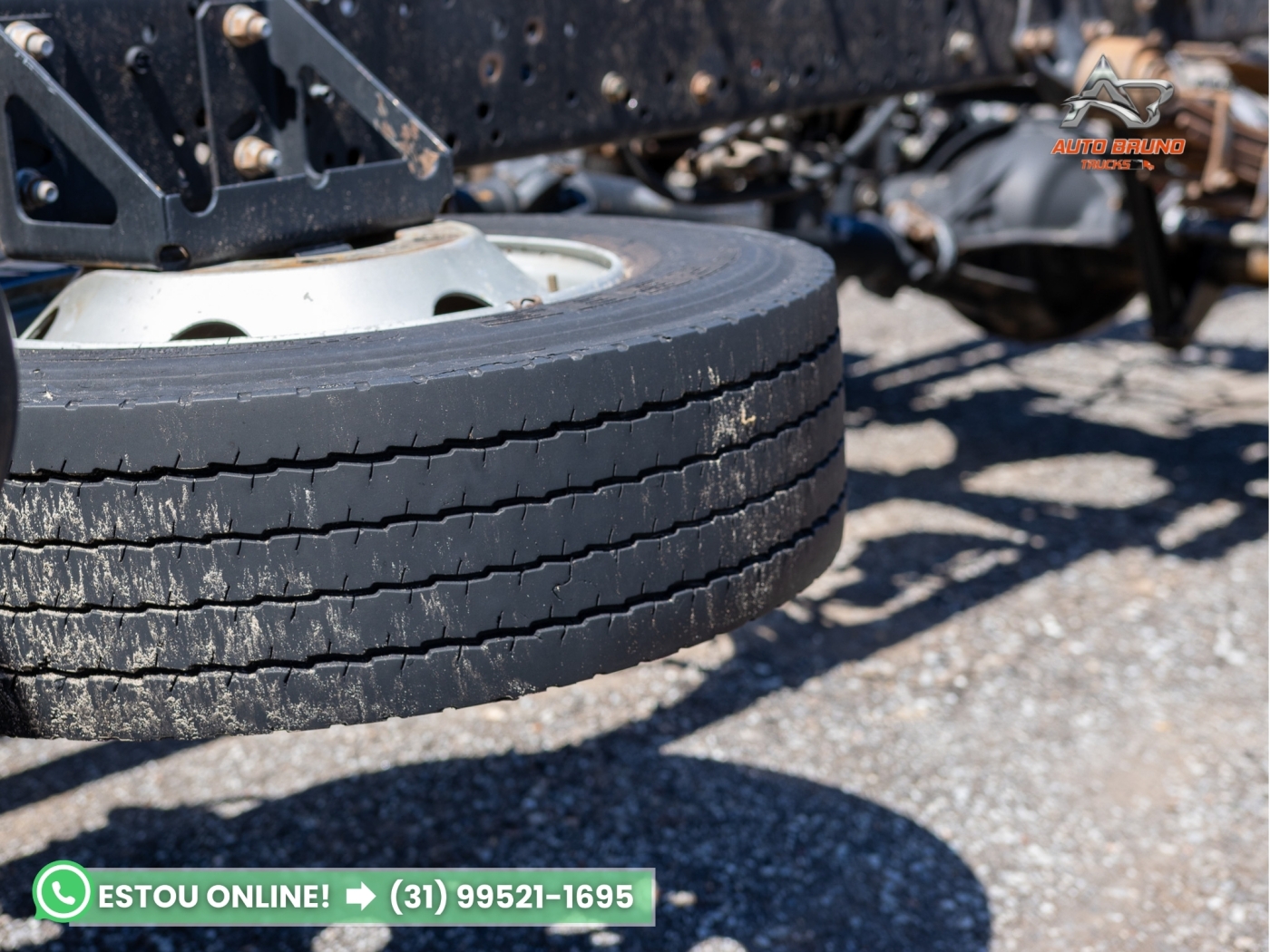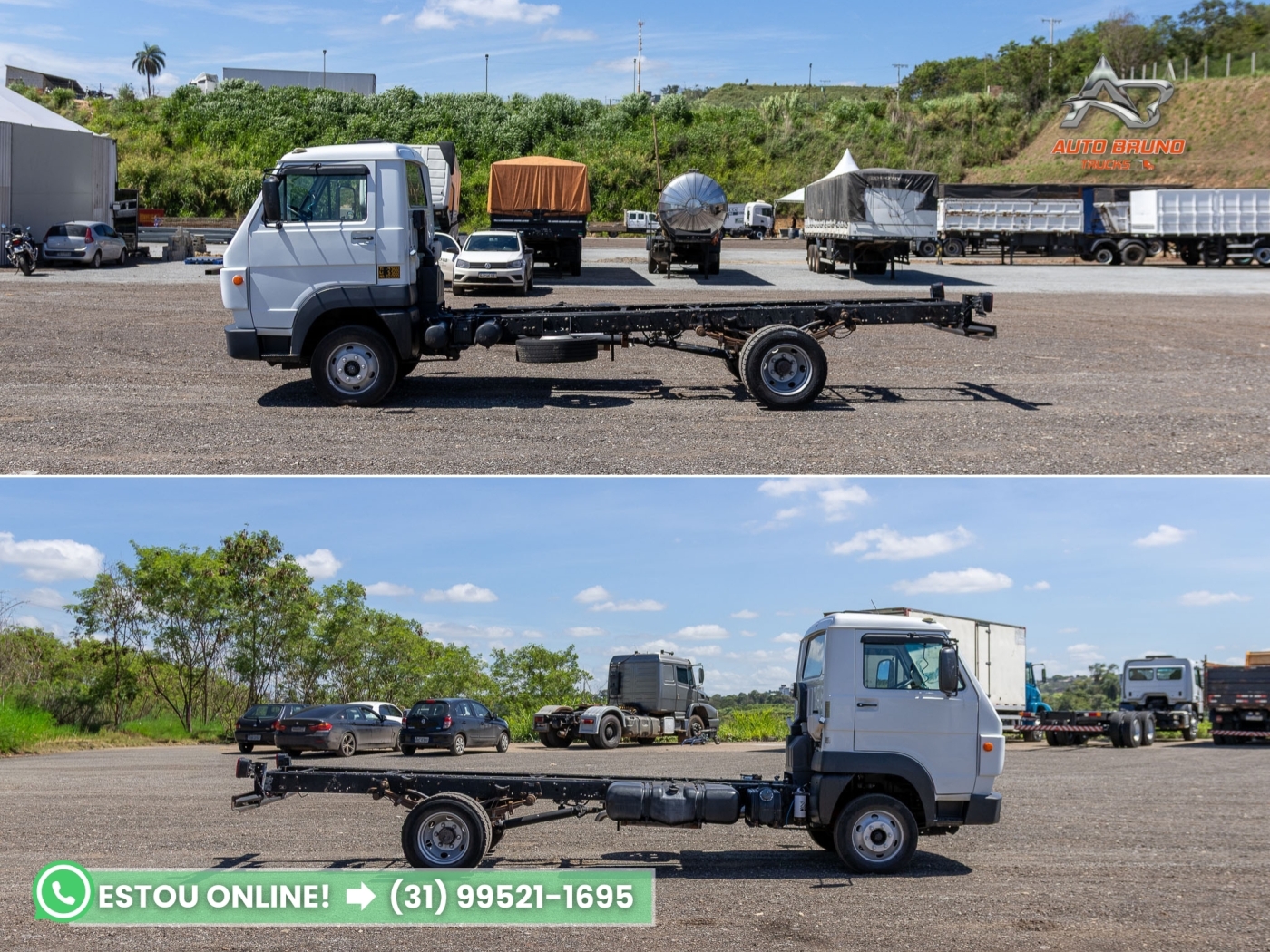 Chassi: Estrutura alinhada e íntegra, sem marcas de soldas ou empenos. Comprimento de chassi útil de 5,00m, com entre eixos de 3,90m, ideal para instalação de baú, carroceria ou tanque.